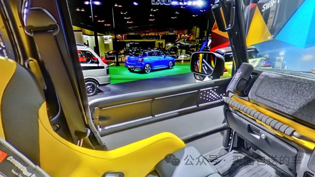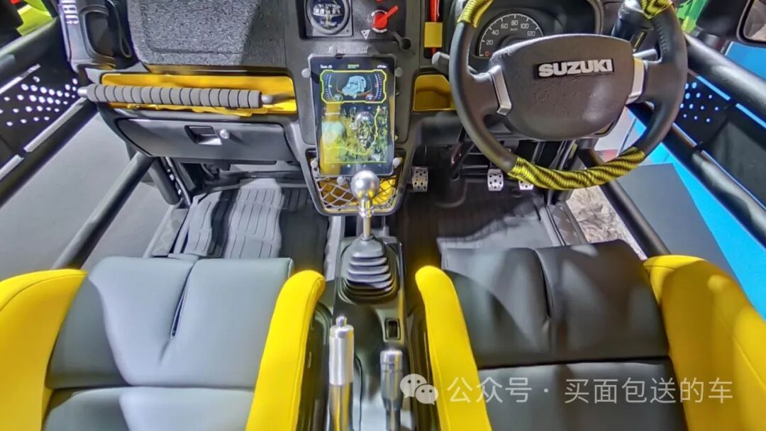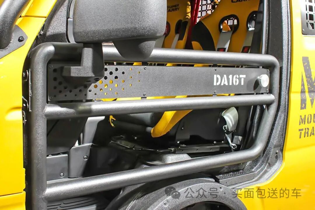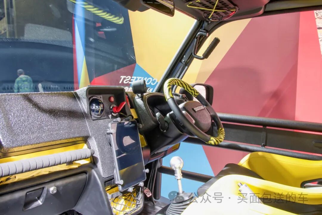 用钢管架和激光切割的板材制作的开放式车门,驾驶室内更换了赛车桶椅。