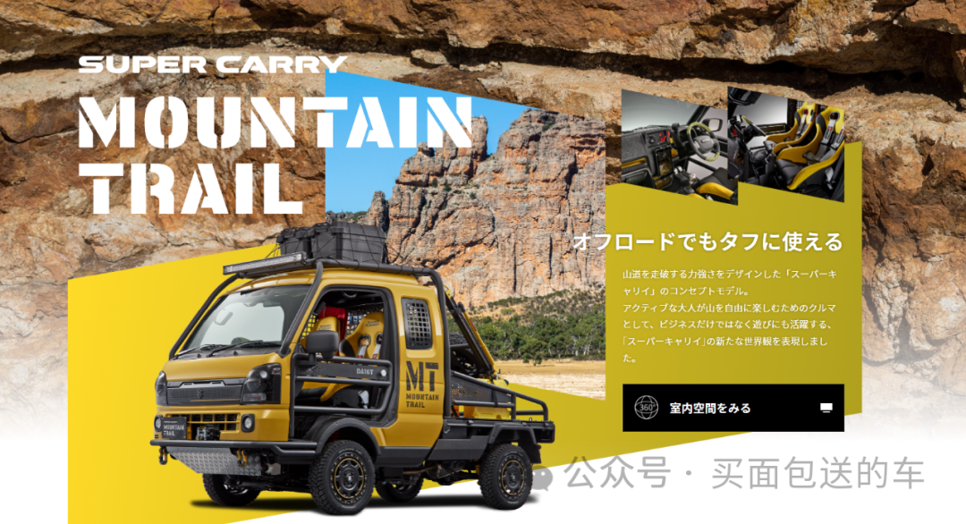 在货箱内作为道具的水箱和登山鞋都表明Super Carry Mountain Trail是一辆为登山爱好者提供后勤保障的工具车。(完)。