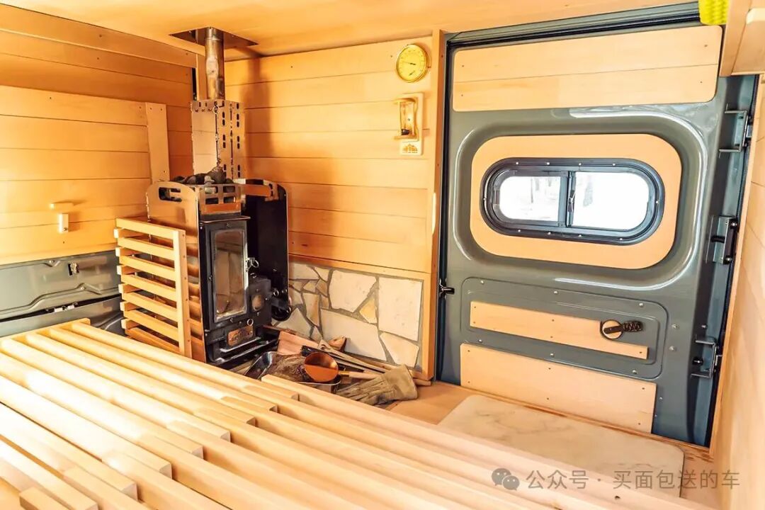 车内采用防潮隔热材料以及名贵的柚木板来实现装饰,足够承受桑拿蒸汽的高温高湿环境。