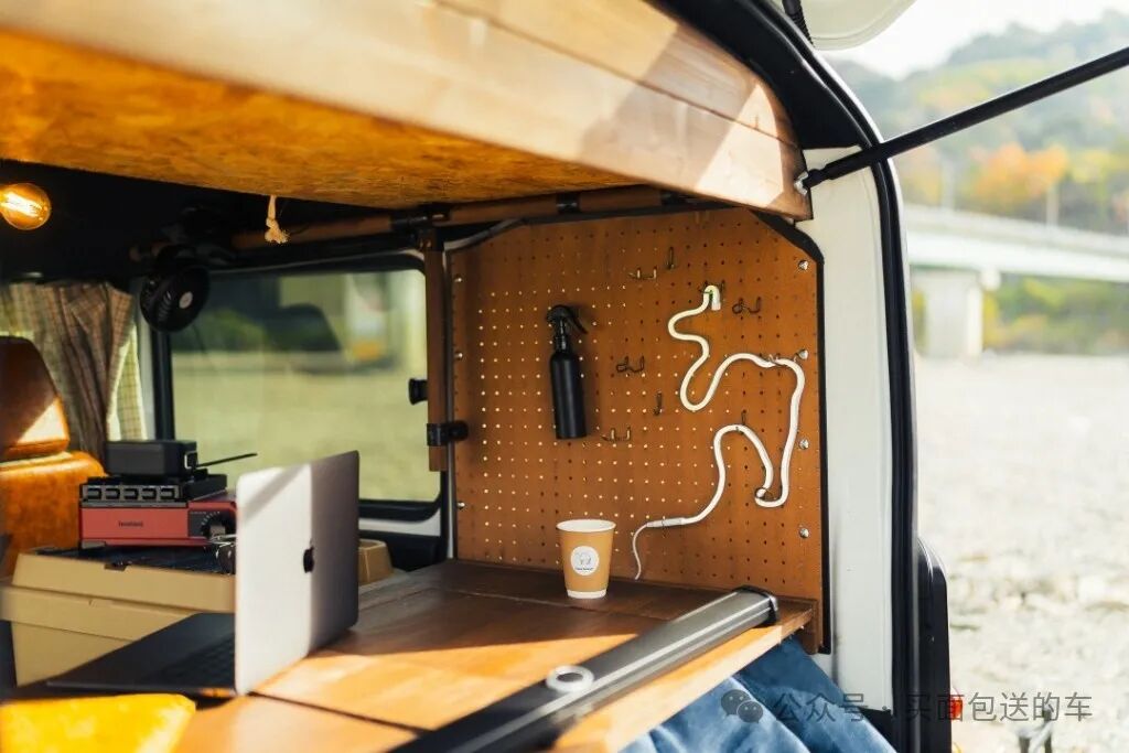 这辆车的车主 三木博弘 先生正在尝试一种新的经营模式:这辆DANALI N VAN 兼顾了自己的代步车,后备箱餐车和露营车,实现爱好和工作的无缝衔接。