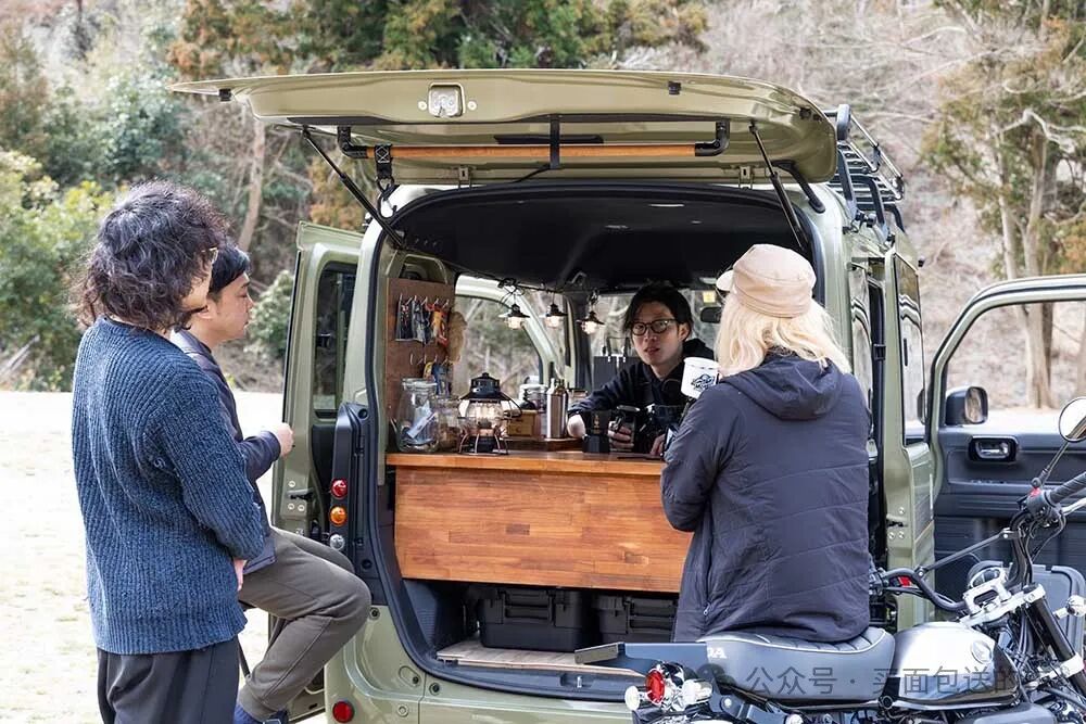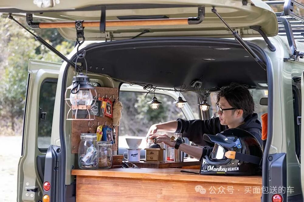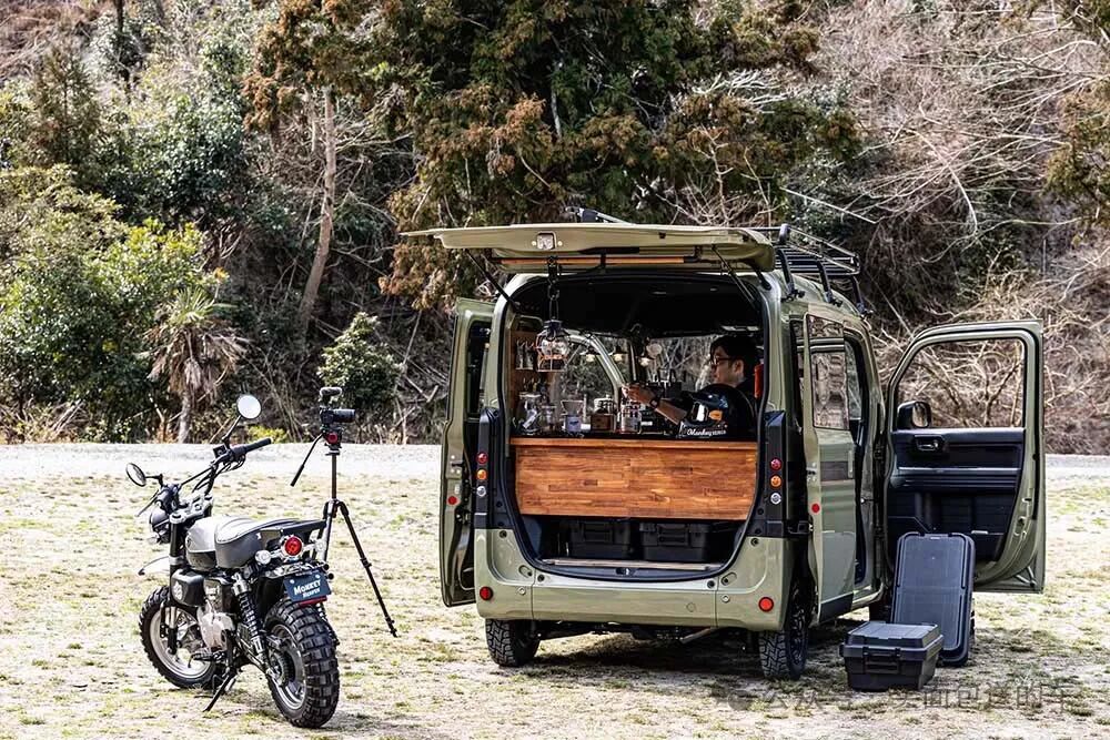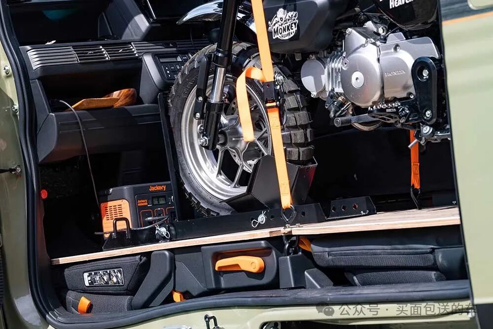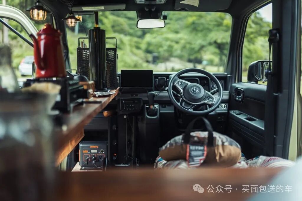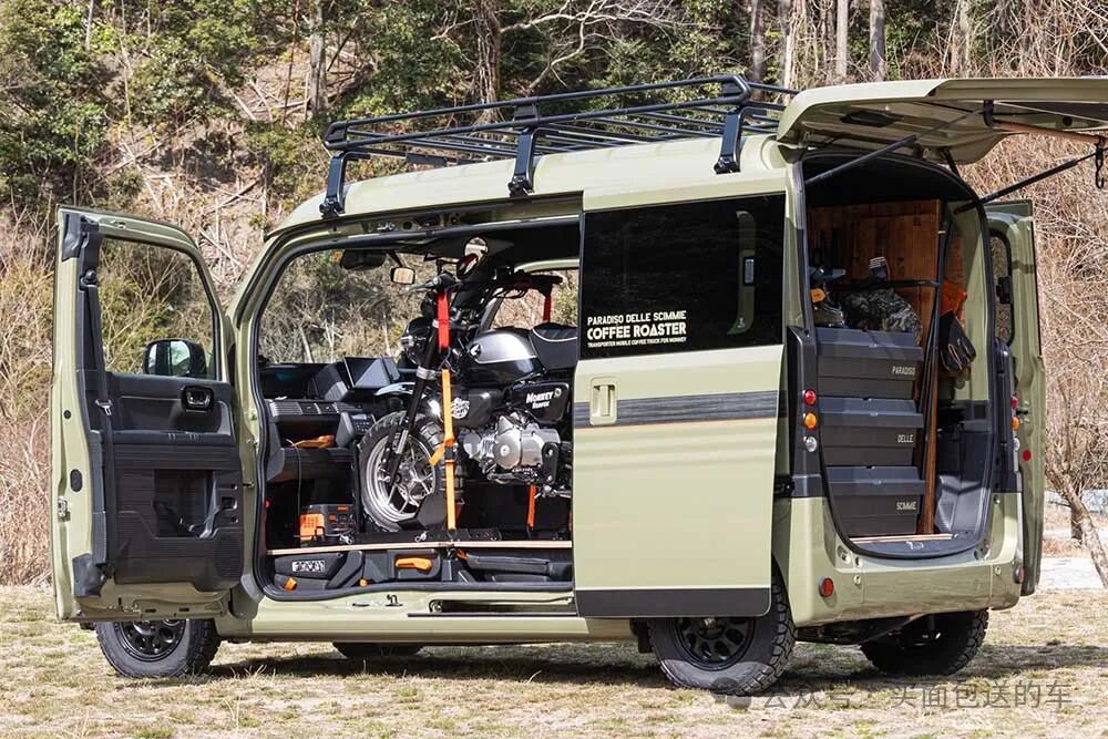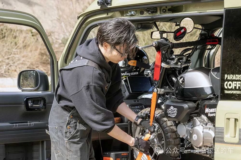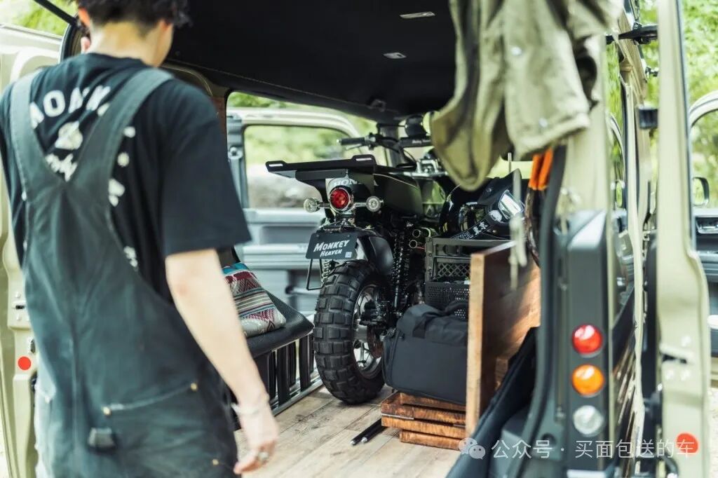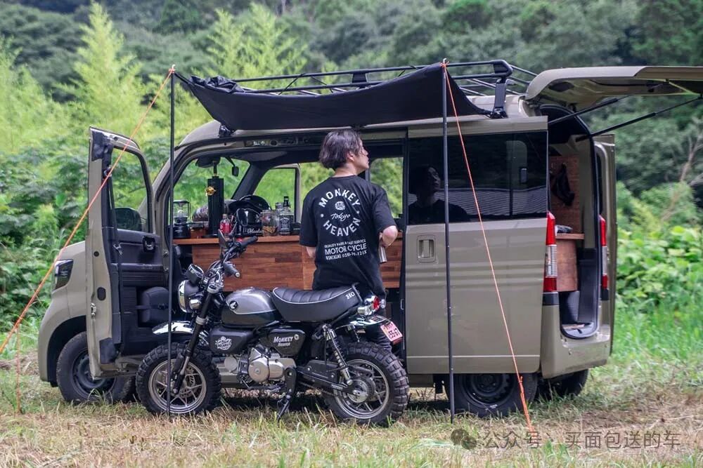 这是一个集合了“摩托车 露营车 和移动咖啡店”的作品,油管上的UP主:小野寺由纪先生在本田N VAN上所打造的Monkey Haven“猴子天堂”,没错这里的猴子就是本田经典的Monkey 125摩托。