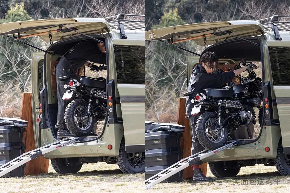 小野寺由纪先生选装N-VAN的理由之一是它很适合收纳运载自己的摩托车。这种4+2的出行模式也可参阅往期文章: