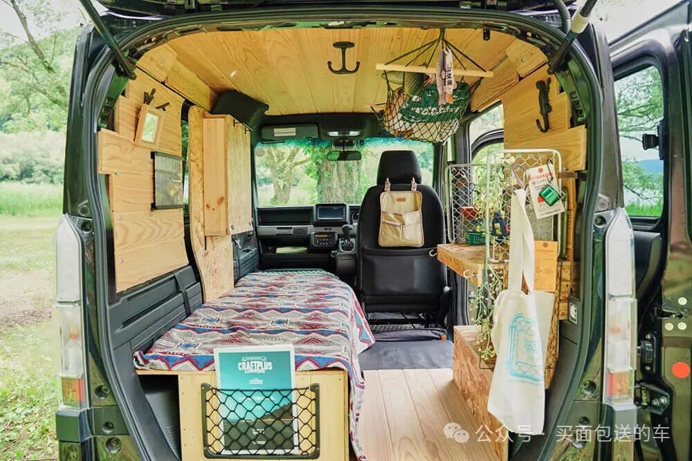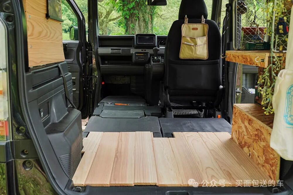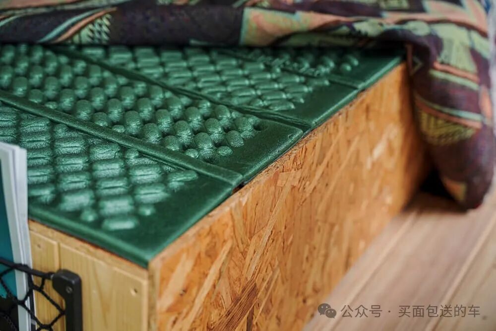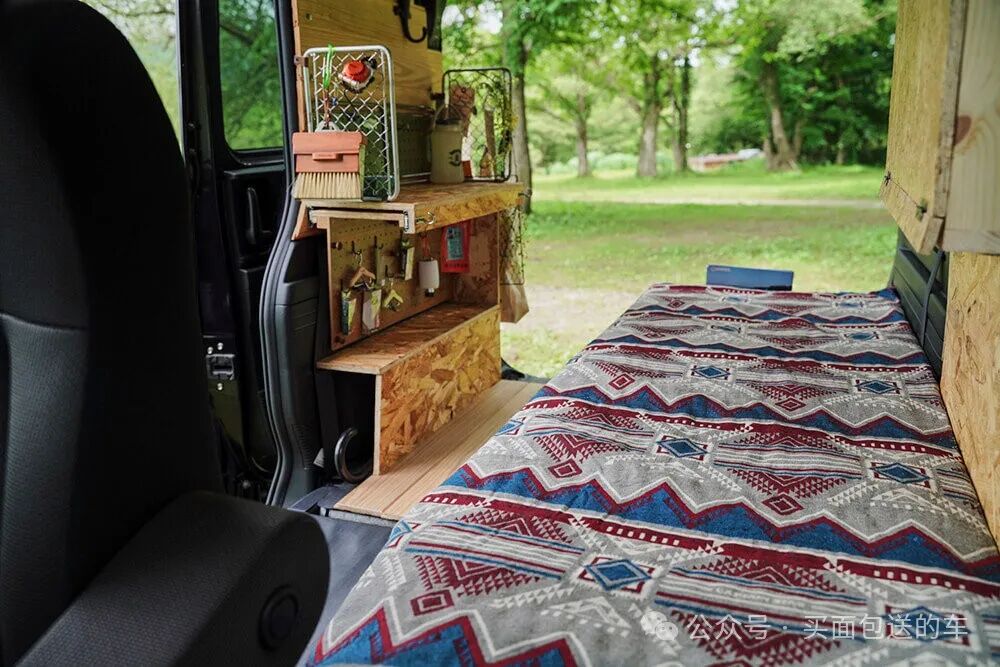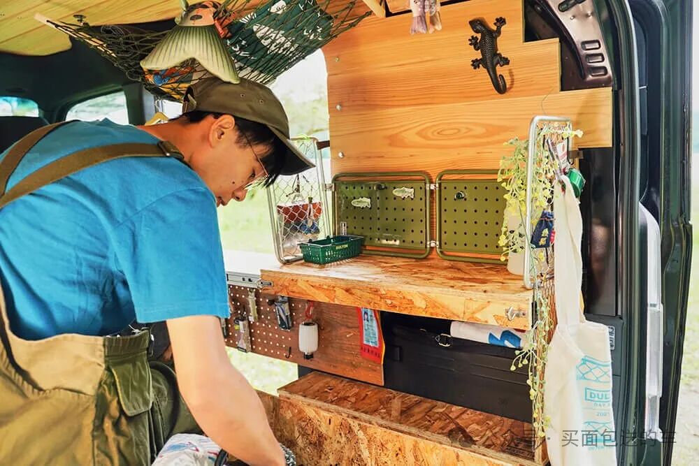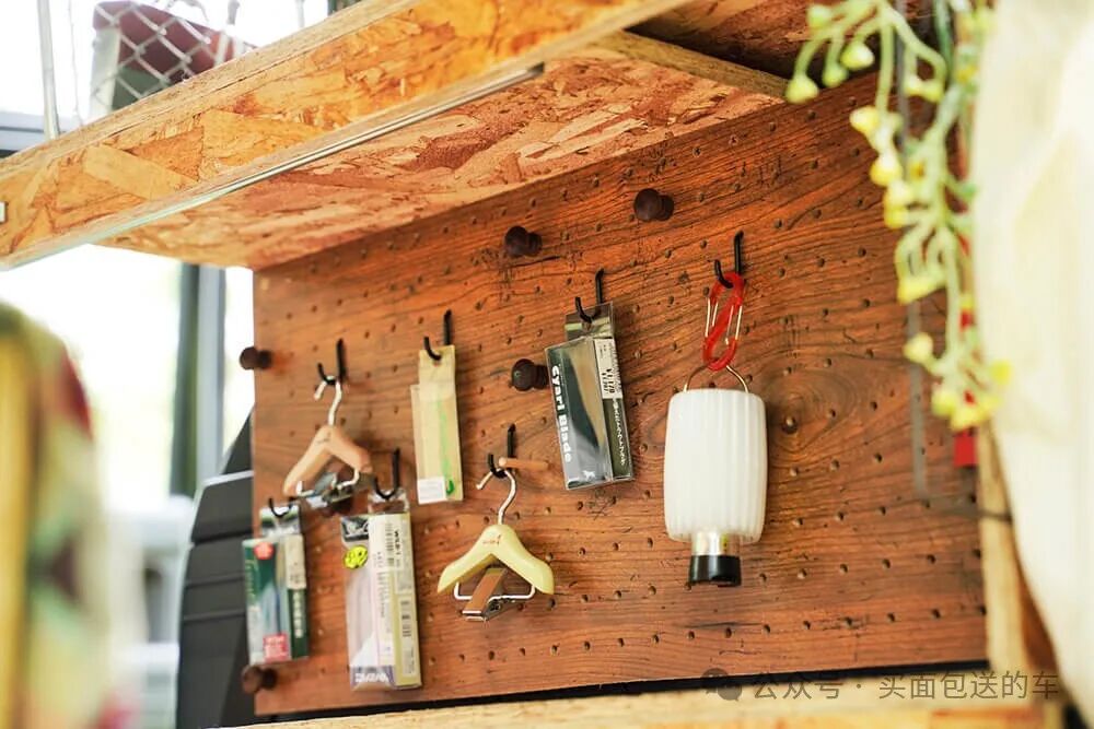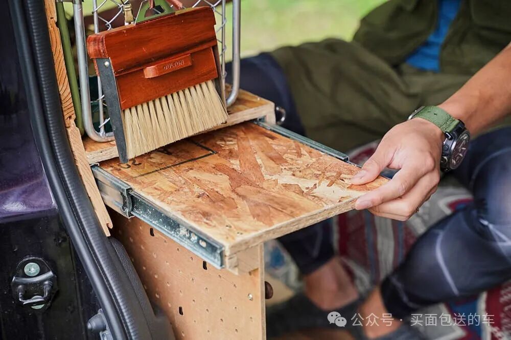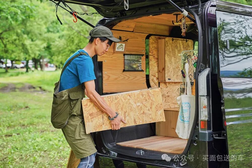 车内使用实木板进行装饰改造,让自己很像是美式VAN的风格,因为实木价格昂贵,也使用了部分刨花木板。