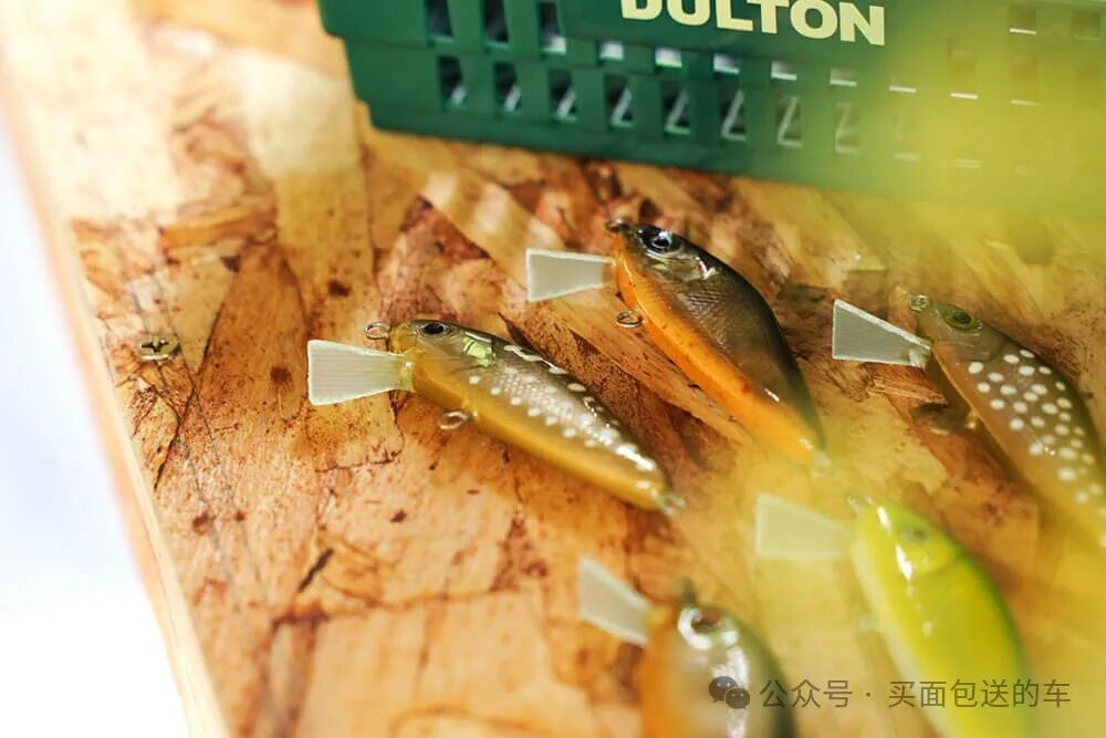 铃木先生也自己制作仿真诱饵。 木质材料并配有一个配重块和一个塑料片。