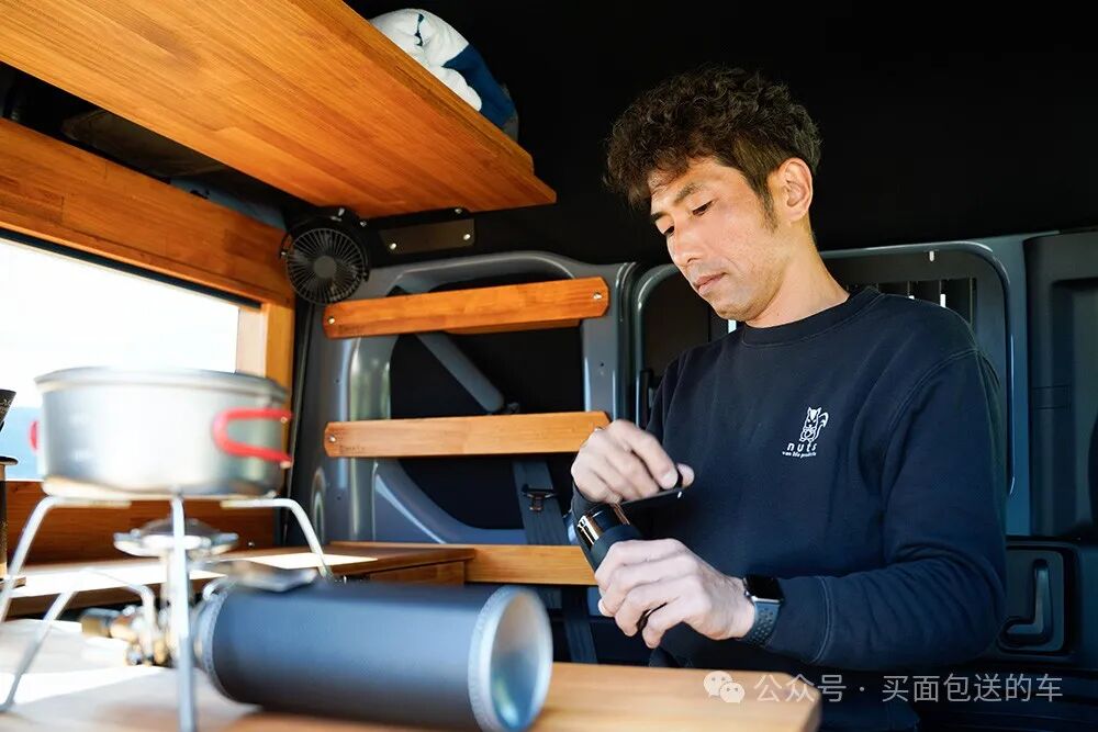 Breaktime先生的经历是传奇的,他最早成立了一家玻璃纤维外观改装工作室Magfactory,之后在攀岩馆和无人机航拍公司工作,最后又回到了汽车行业,如今打造了nuts vanlife products的自有品牌,为本田N VAN 和大发ATLEE 提供露营车定制以及专用产品。