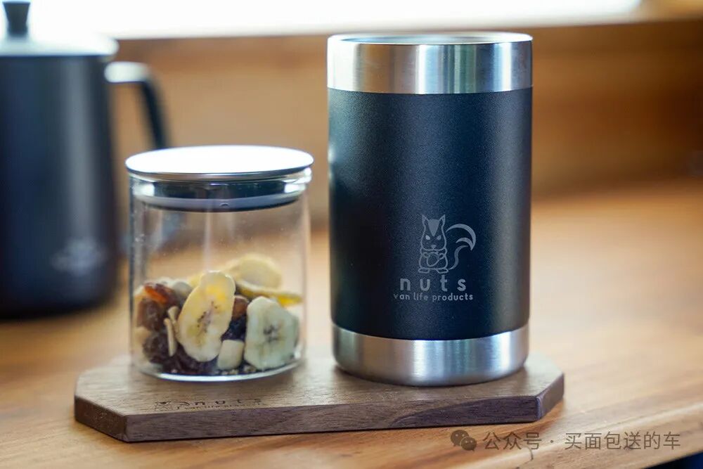 这套水杯和收纳罐也是 “NUTS VANLIFE 坚果露营车”的周边产品。