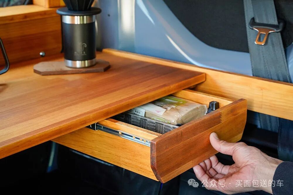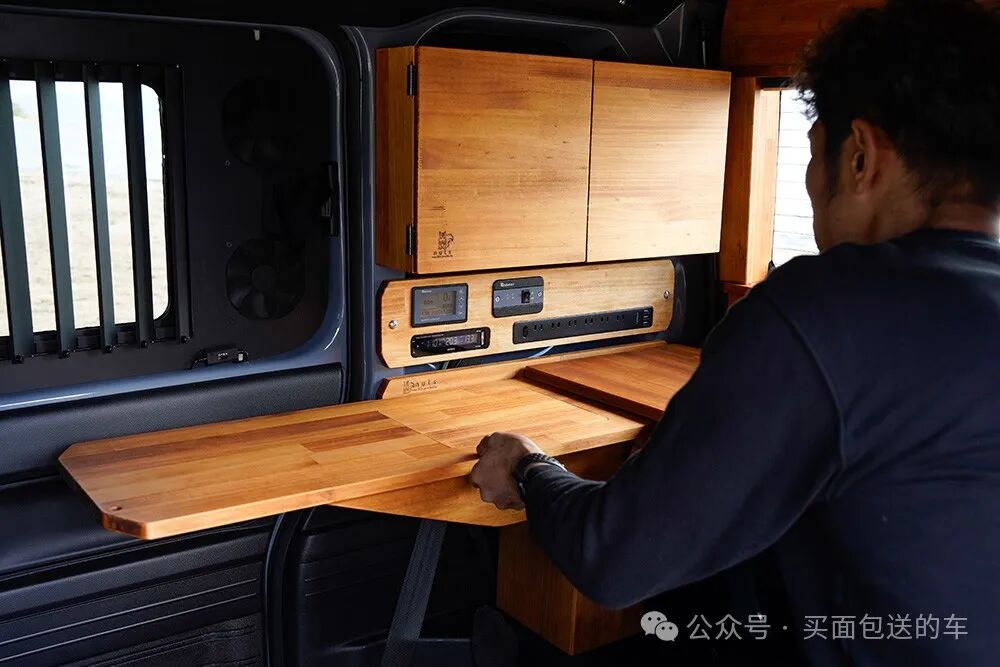 车内的家具和户外的桌板都是Breaktime先生根据经验重新设计并亲手制作的。
