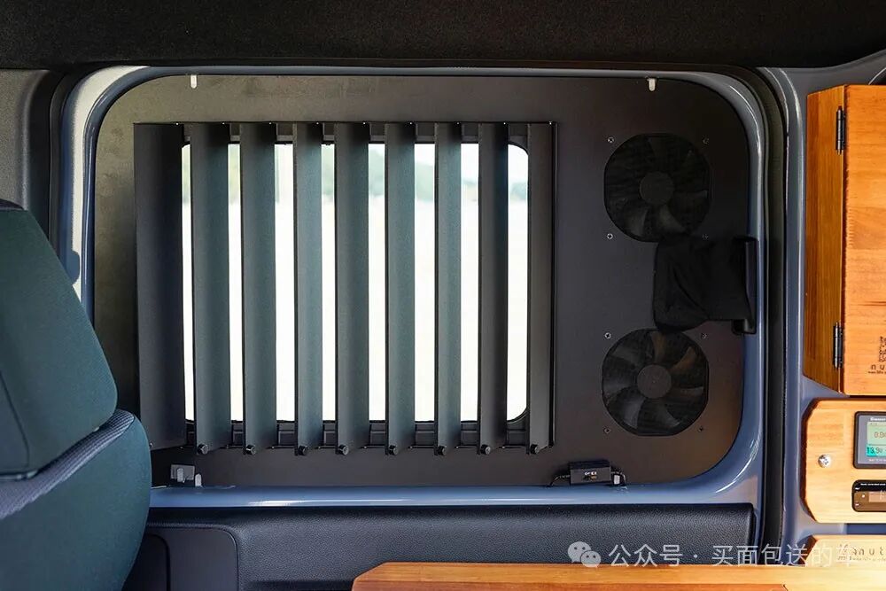 “NUTS VANLIFE 坚果露营车”的车窗换气模块产品之一,折叠后并不影响车门动作和车内的空间。