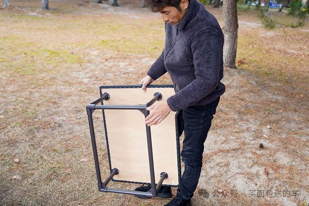 构建床铺的模块分为两个部分,可以取下来作为户外桌凳使用。