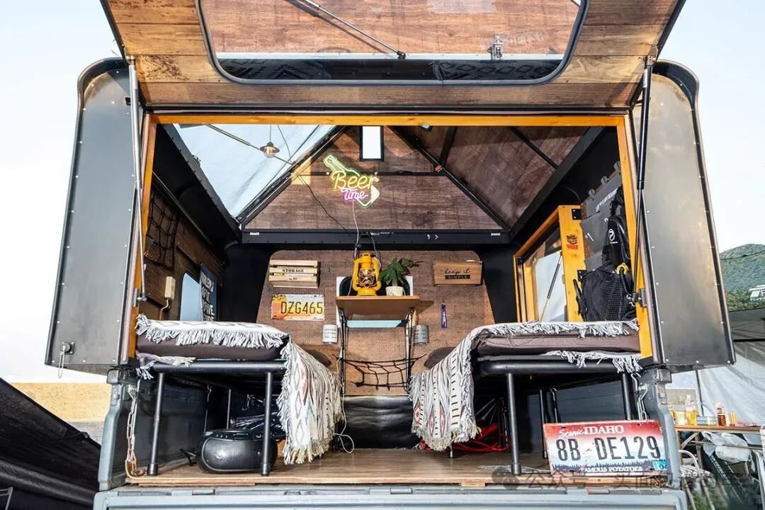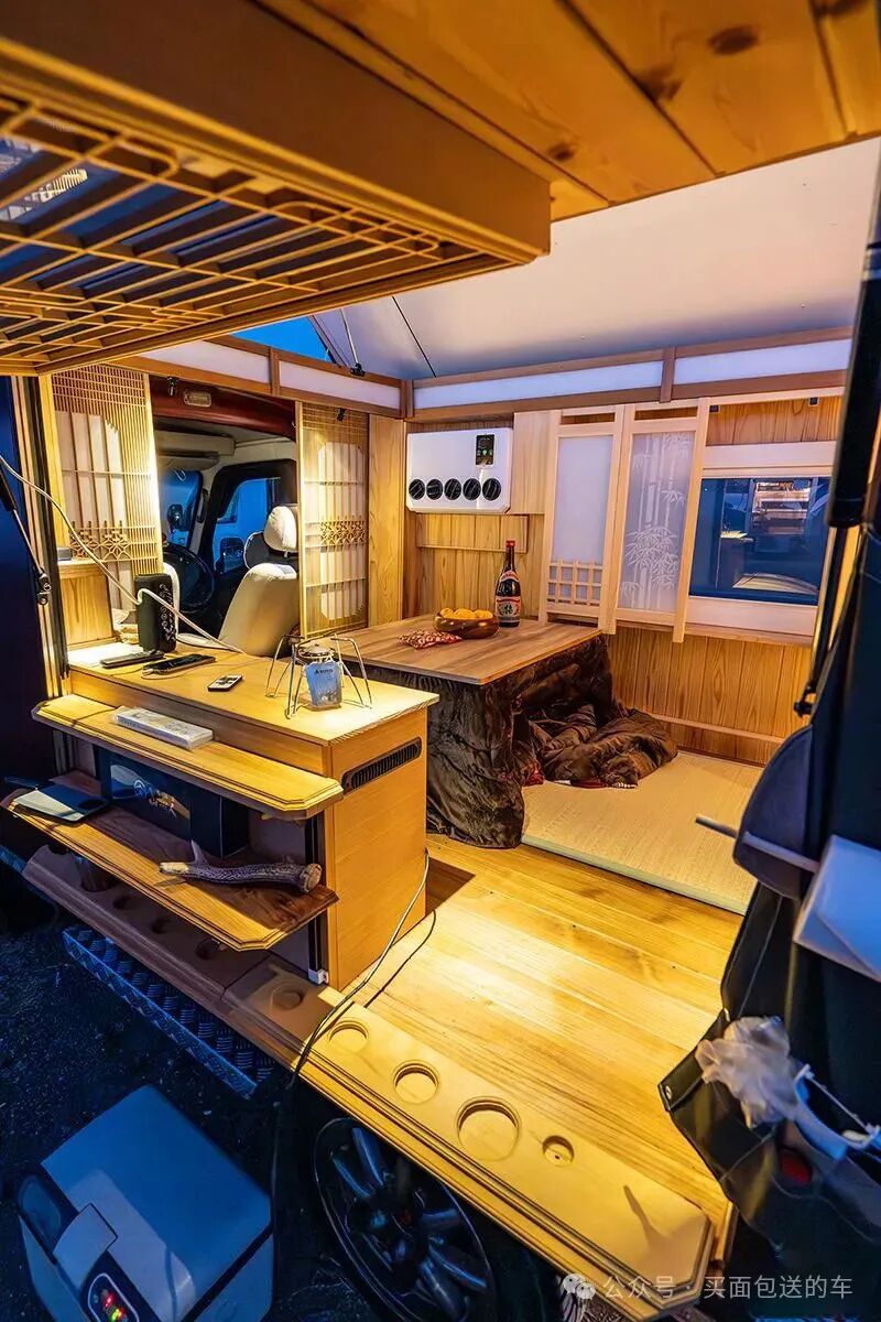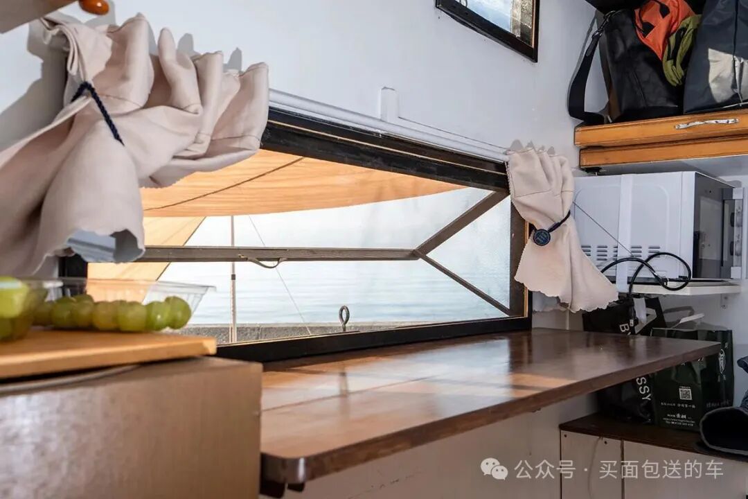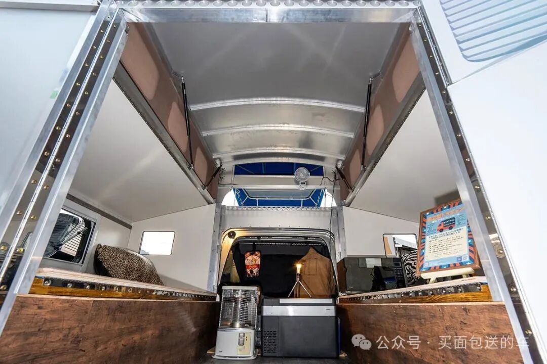 融合了岛国传统室内装饰风格的露营车,在打开车顶和侧门后,最大限度进行了借景。
