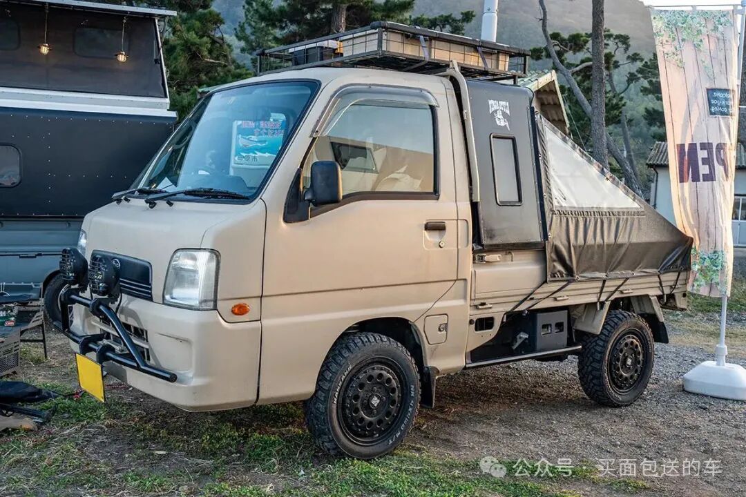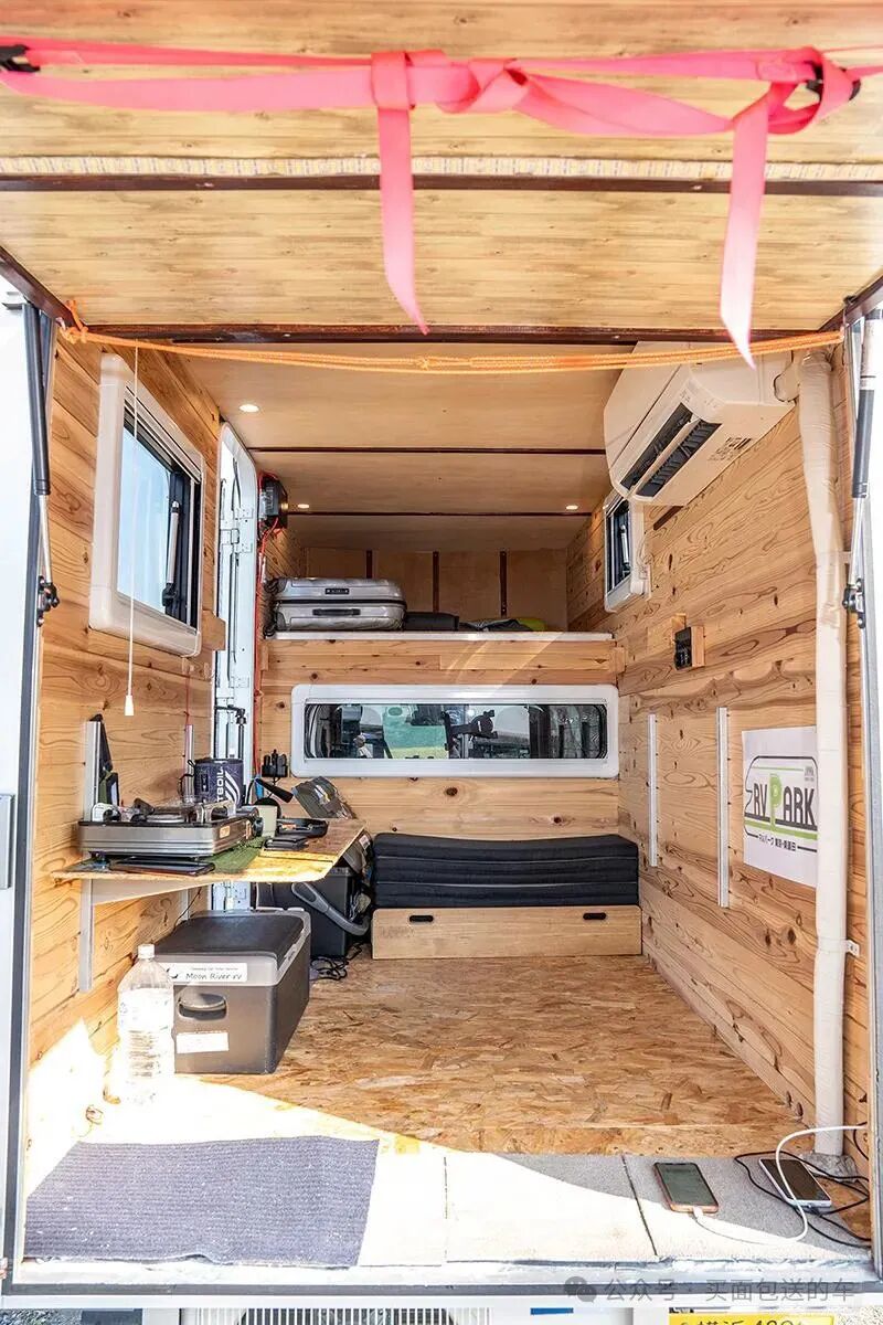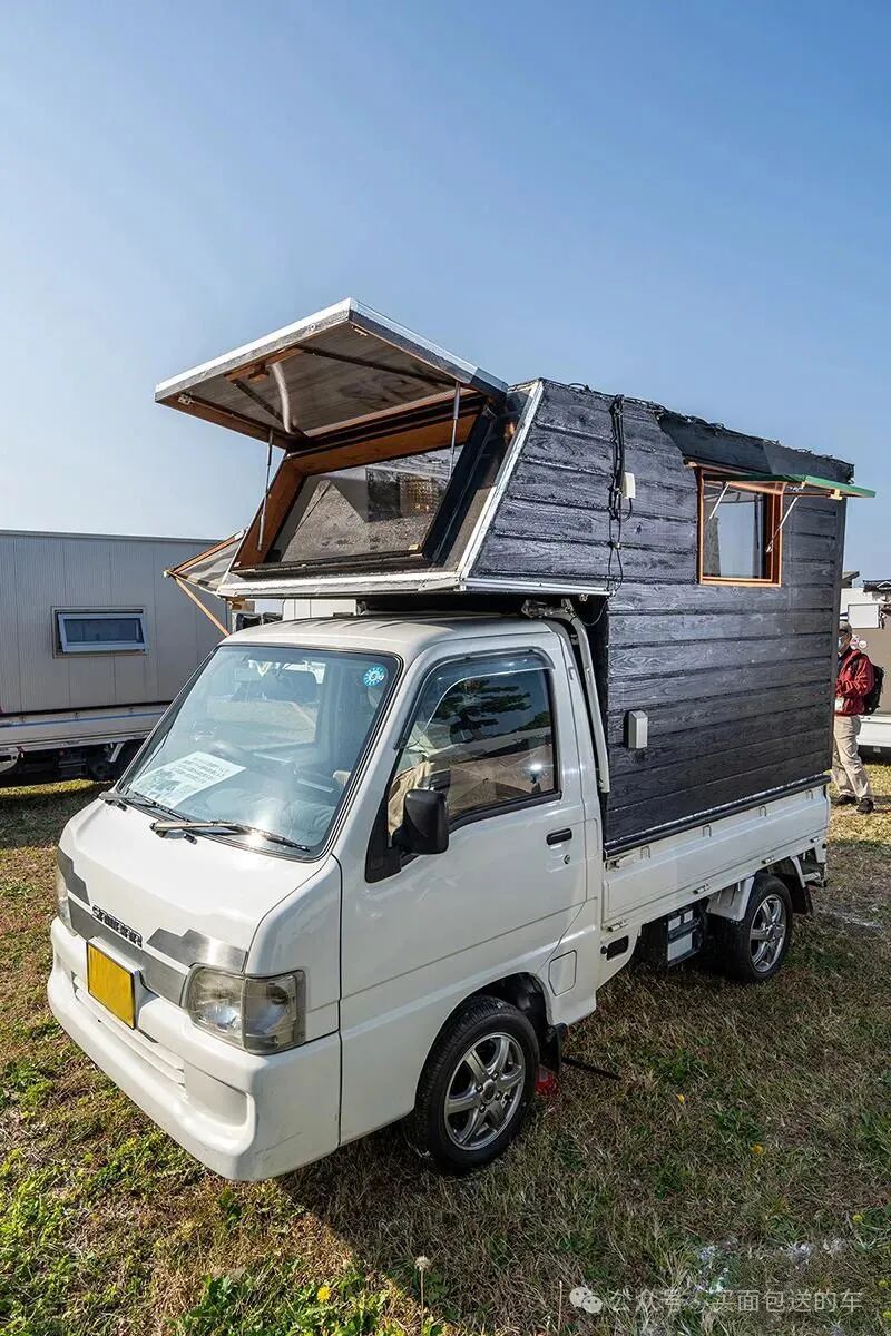 这是油管上的露营达人383taka在斯巴鲁水鹿轻卡上改造的房车,大量使用建筑材料。