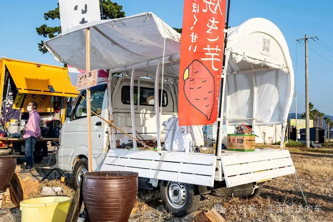 现场他们也带来了后备箱集市用的烤红薯小车,白色的帐篷布是通过防火阻燃处理并且保留防水功能的材料,关于岛国的街头烤红薯文化可以参阅:
