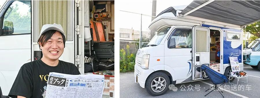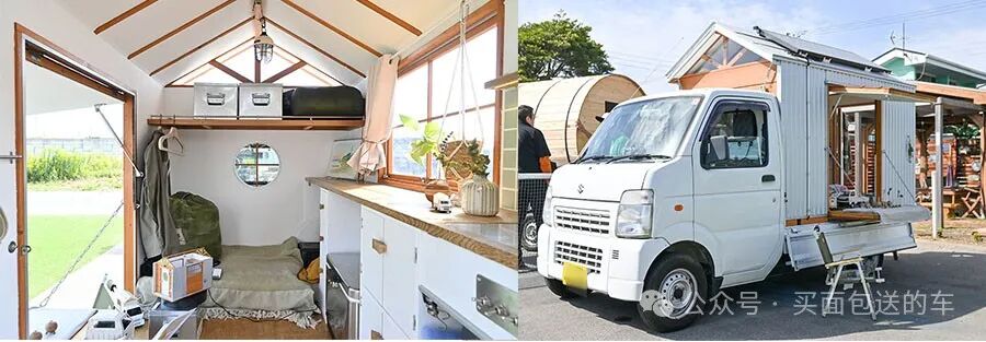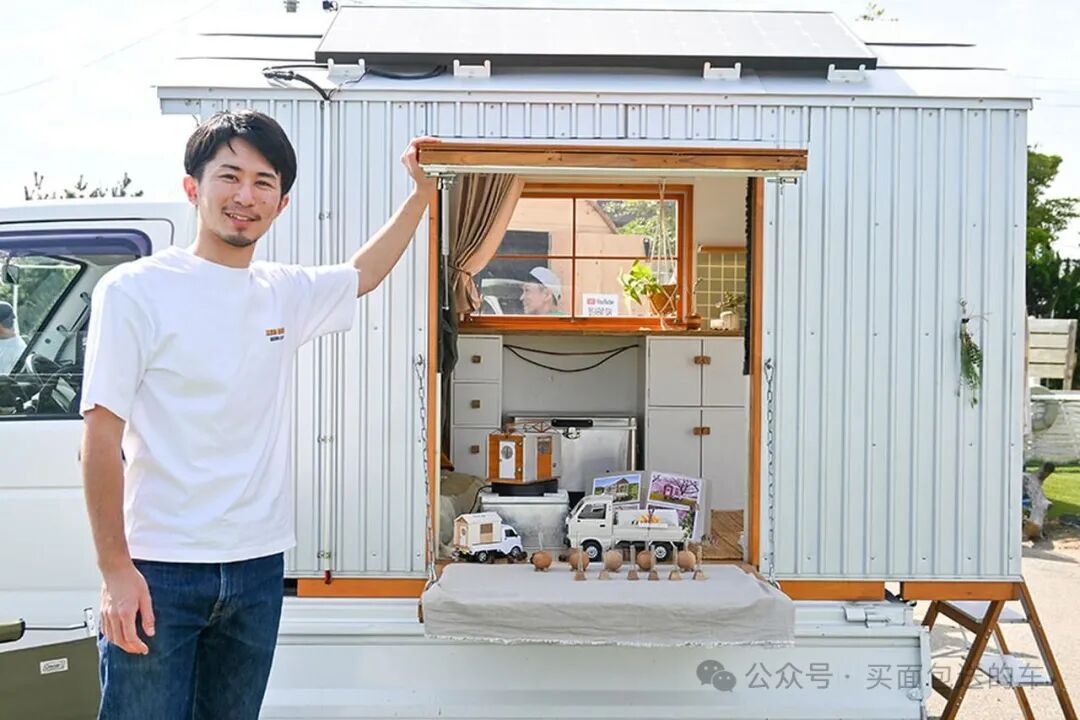 士户先生在YouTube上是热门的露营博主 。在铃木CARRY轻卡上用镀铝锌钢板覆盖的机舱式房屋很漂亮。有很多特别设计和定制的地方,三角形窗户和横梁可以拓展使用空间。
