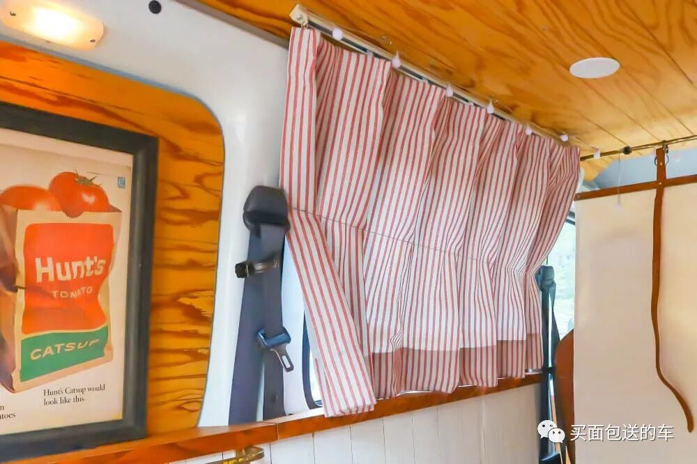 拉上遮光帘。驾驶室后方完全为一个独立的空间,周末这里是作为孩子们的游乐室。