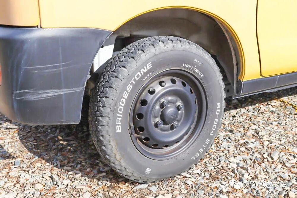 原厂的钢制轮毂配上加厚的AT轮胎,视觉上感觉底盘变高了,插一句:石桥正二郎在1931年创立的普利司通轮胎也是亚洲第一个汽车轮胎品牌。