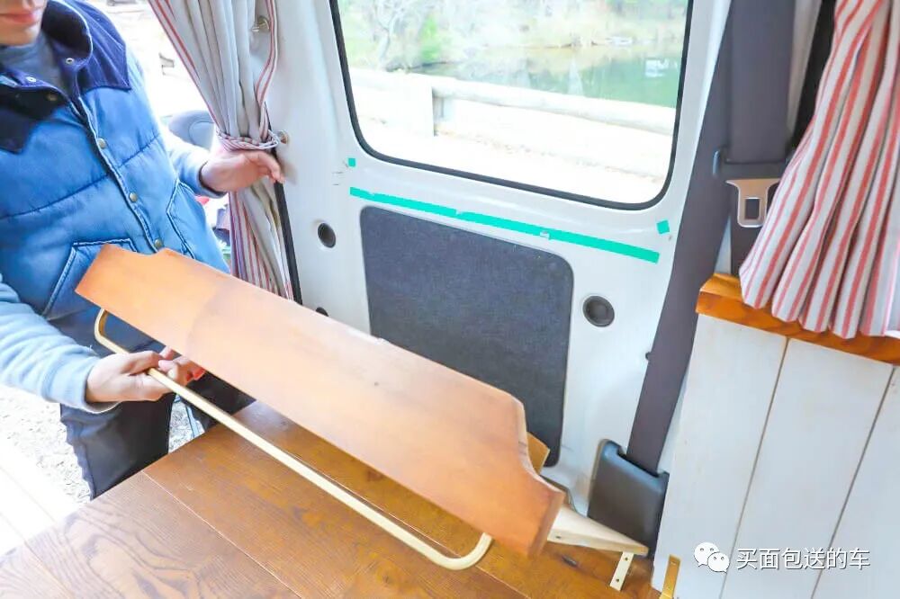 这个在车窗上作为遮光板的木板也采用磁铁固定。