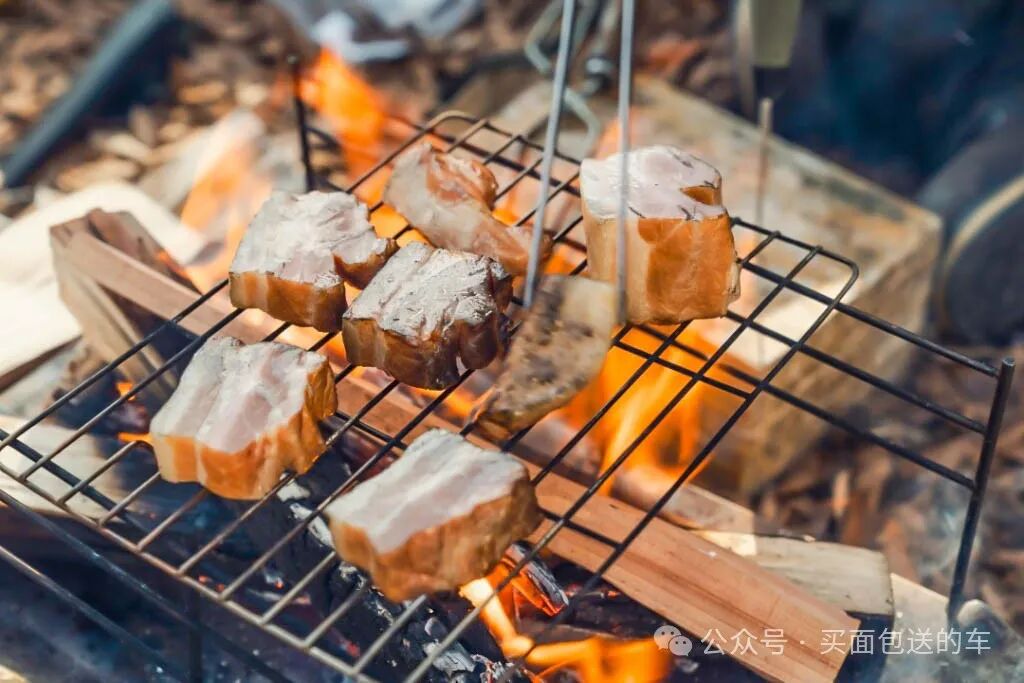 烧烤培根和牛肉块能在制作出简易便捷的户外美食。