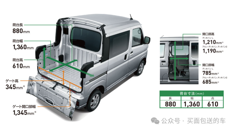 亮点在于车尾的货箱,看上去更像是轻自动车中的小皮卡。