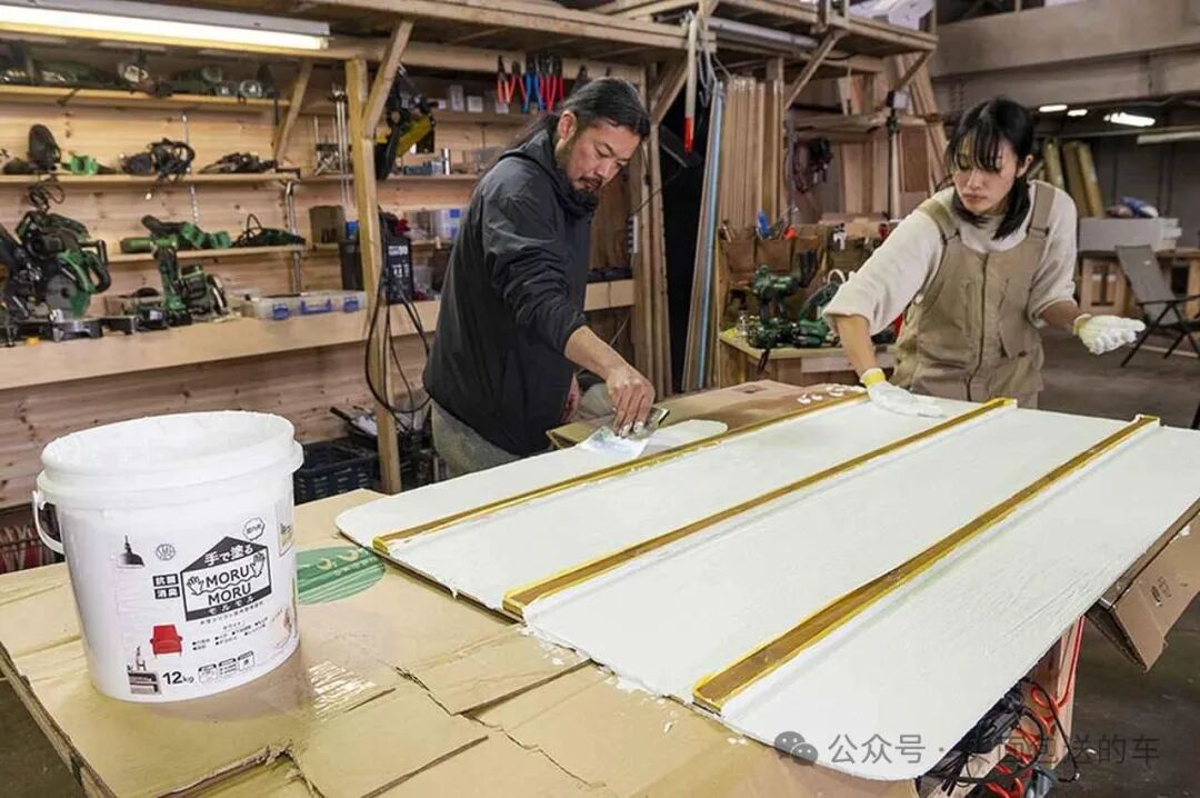 硅藻泥天花板被整体吊装在车顶上。
