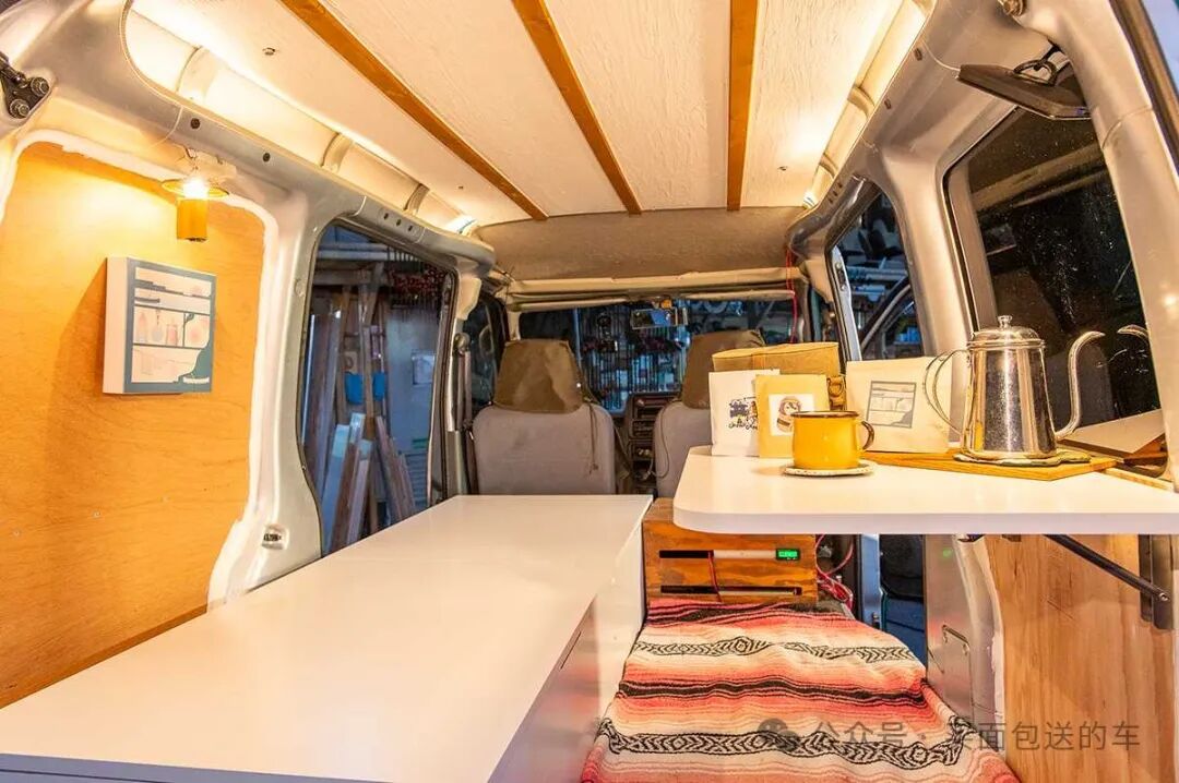 这是改造工作的完结,面包车内构建了实用而有特色的空间(完)。