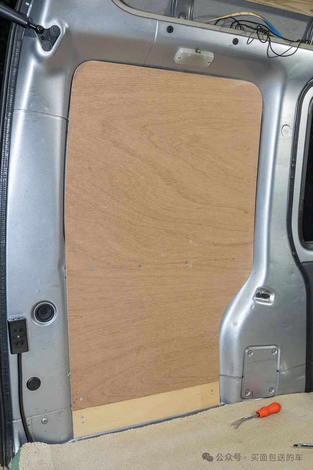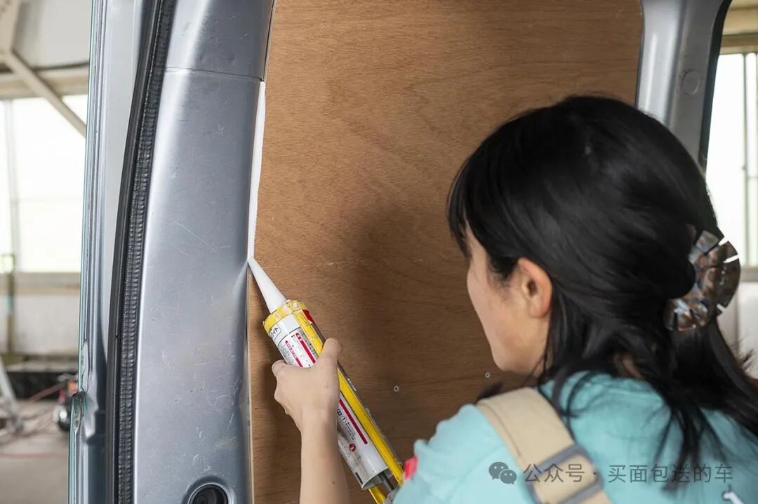 采用胶合板对D柱窗户进行密封以代替原车的塑料内饰板。