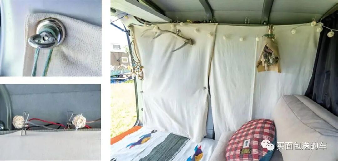 用磁铁固定的后备箱挂帘。