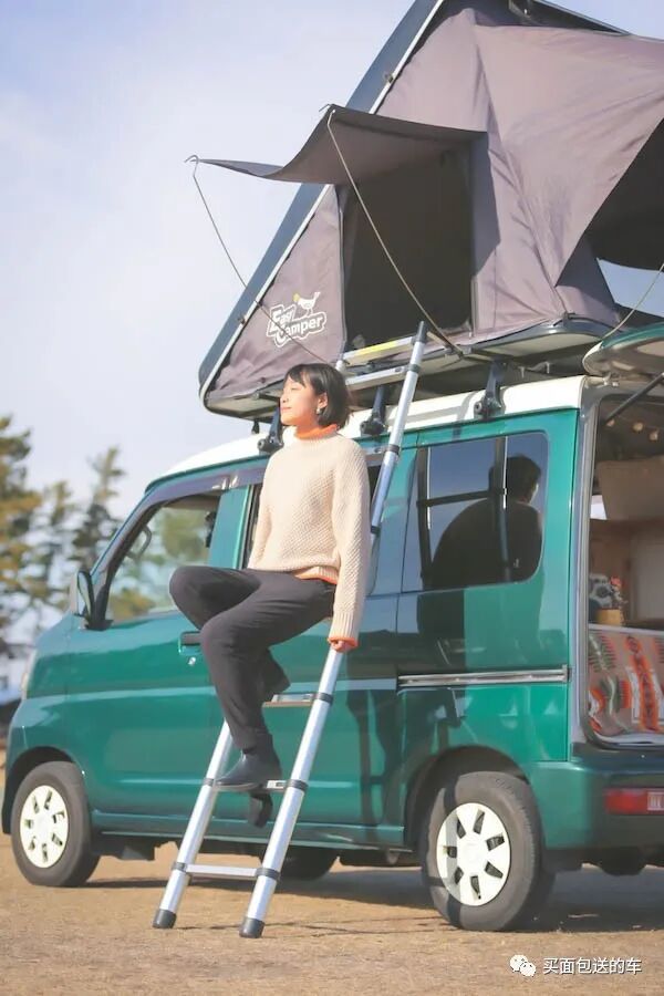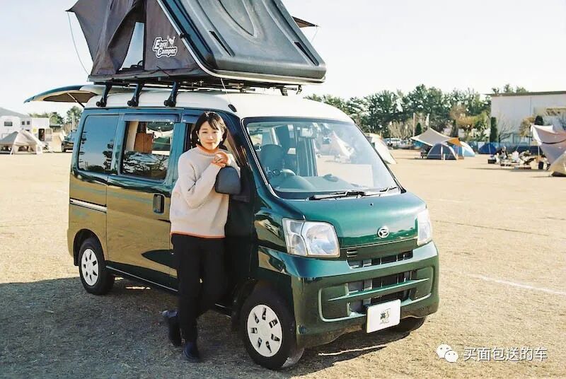 Chomoka 乔默卡选择的大发HIJET是铃木浪迪EVERY的直接竞争对手,油耗和维护成本低,单身女性负担也无压力,相比专业户外露营,乔默卡为了节省通勤时间选择的车中泊地点是森林公园以及公共的绿化区域,车载水电系统并非刚需,只是加了复古的车顶行李架。