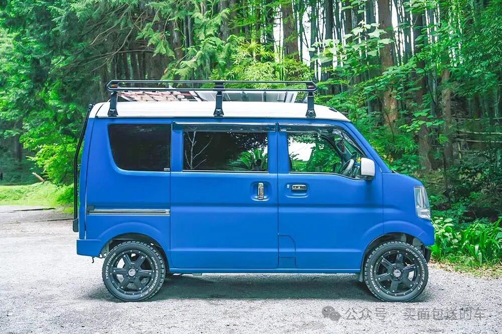 为了放大盒子车的车身造型,蓝白双拼色改变了外观的视觉效果。