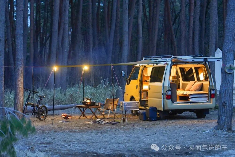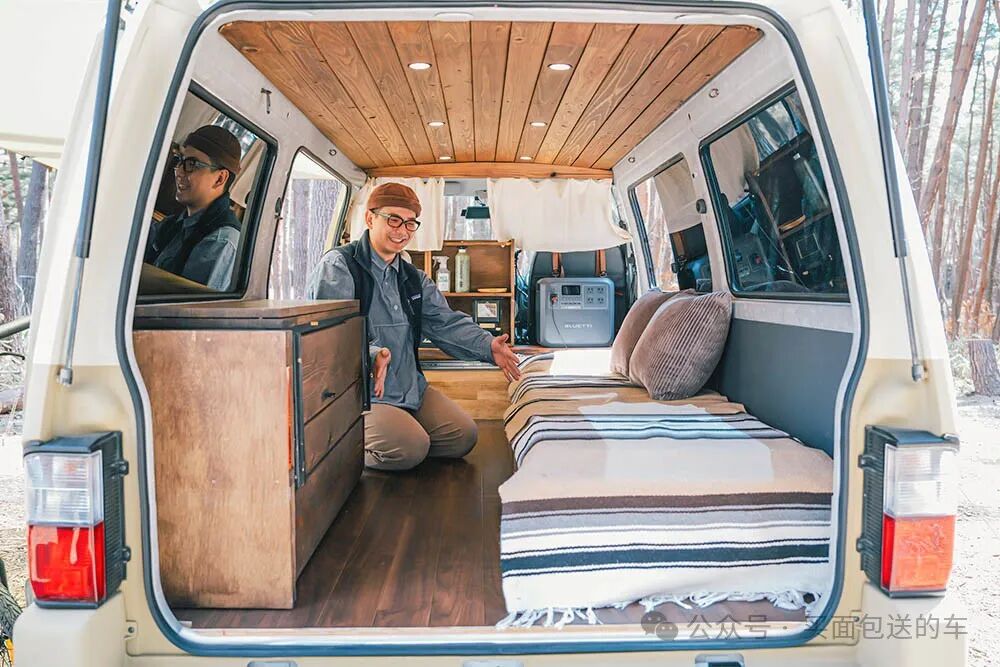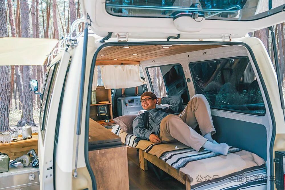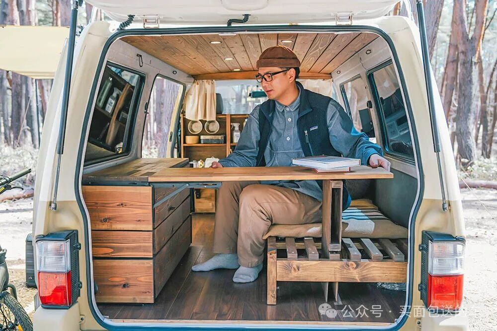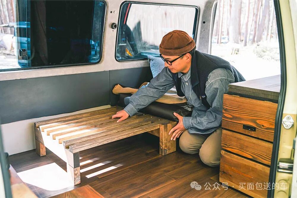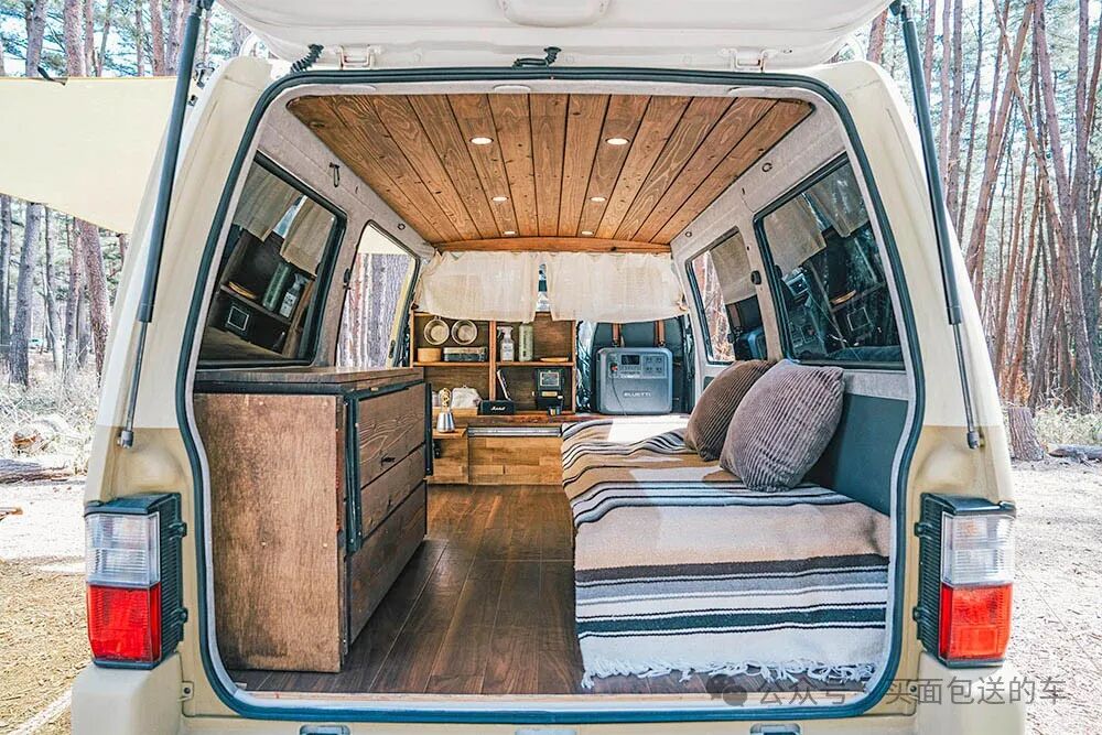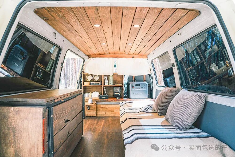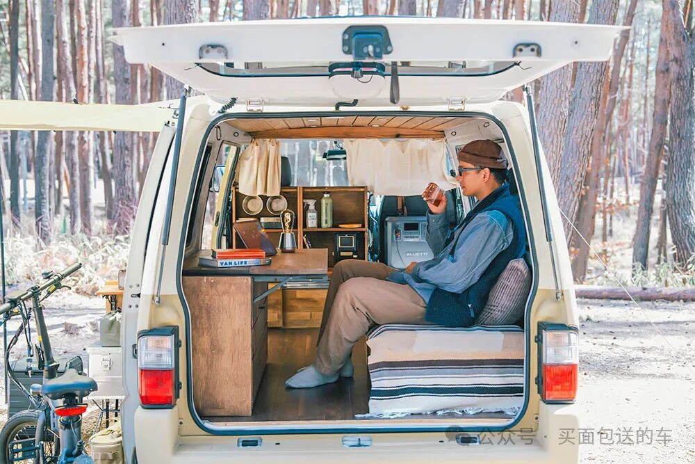 北欧风格的小木屋就集成容纳在在车内了,视觉上的搭配技巧是颜色不要超过三种。