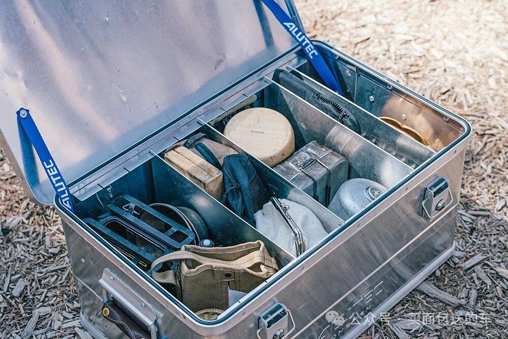 在不锈钢箱内收纳的餐具和灶台,有效保护装备并且易于清洗。