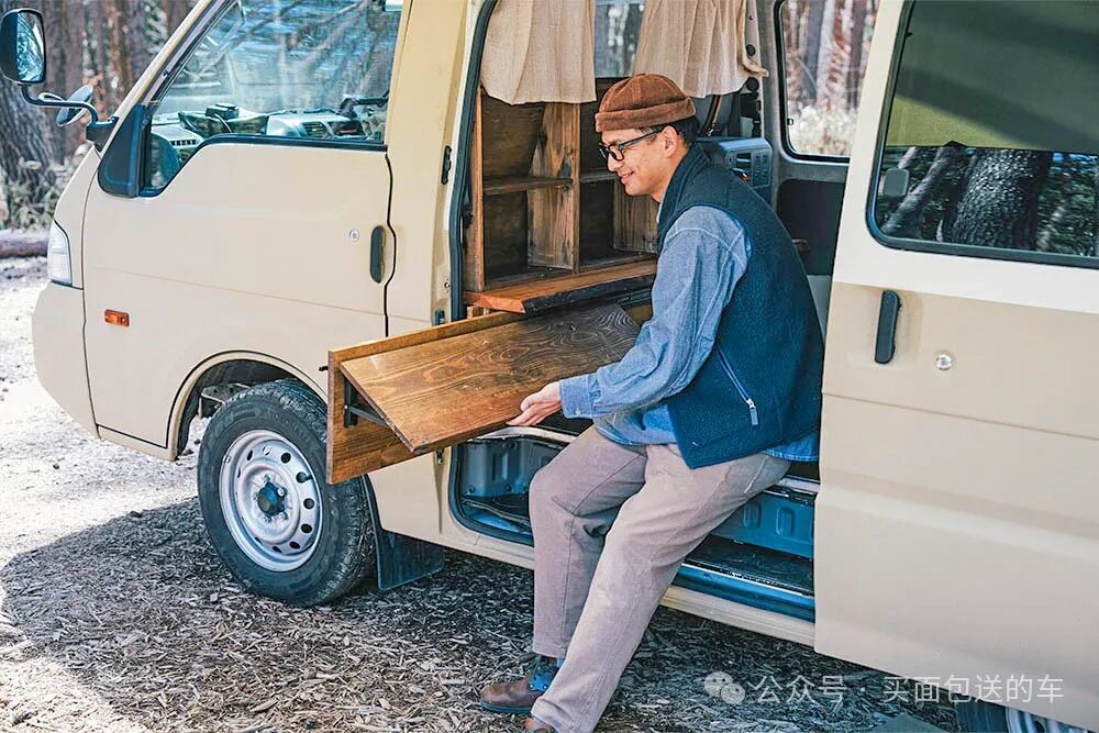 原型车为马直达的Bongo Van DX,在使用成本,空间装载性和操控上都有很平衡,车身采用双色哑光水性漆面涂装,并增加了不锈钢的行李架。