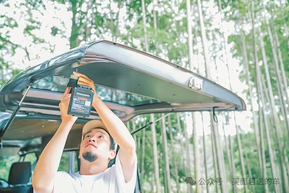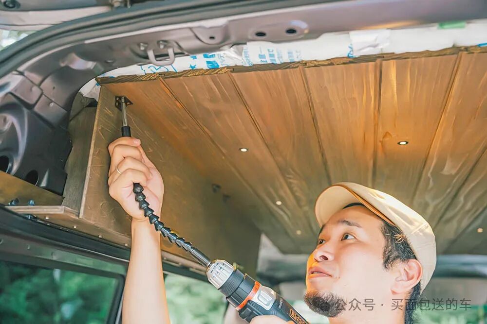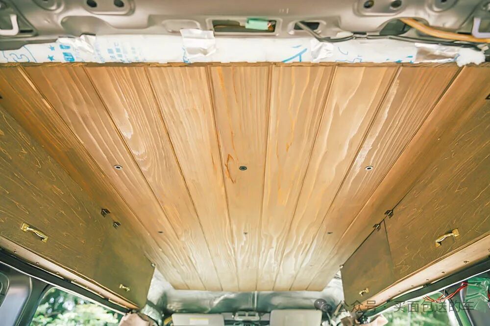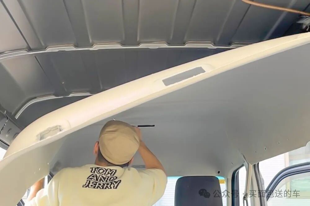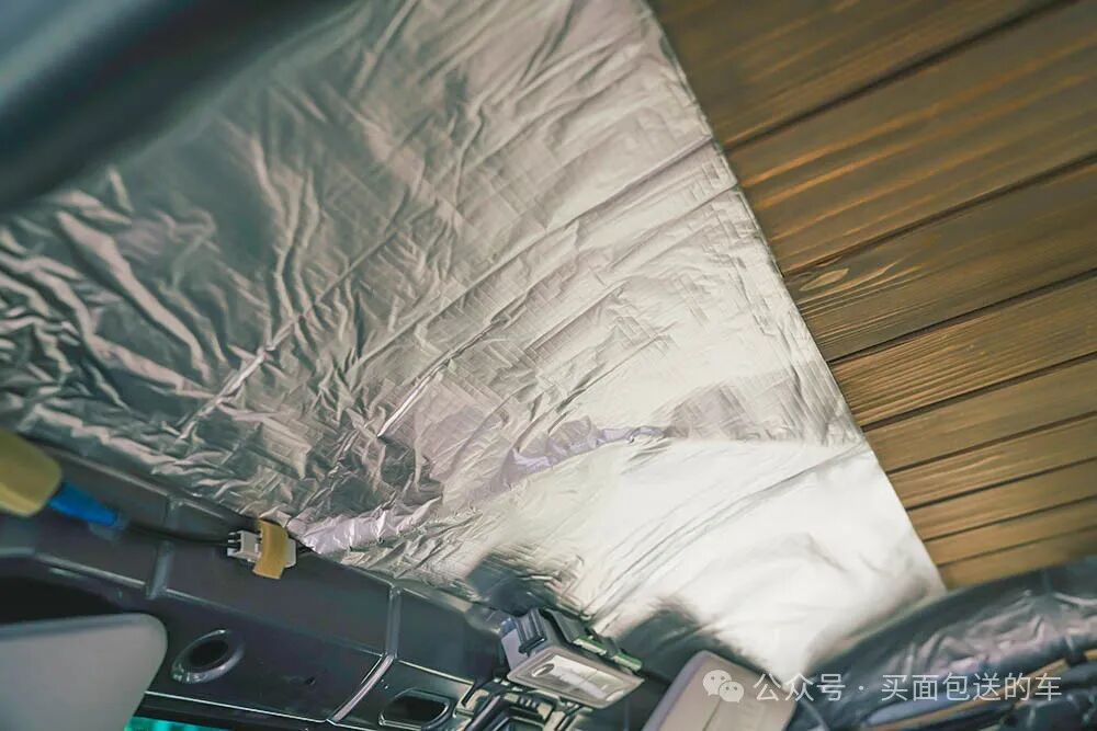 为了保温额隔音效果,Ten先生在车顶重新贴满了隔热隔音垫。