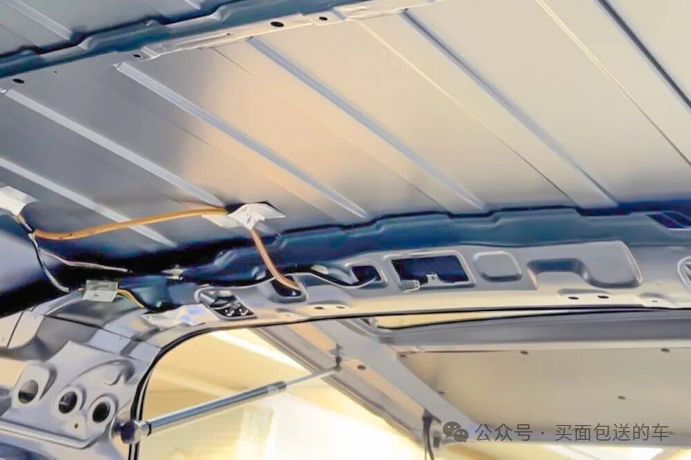 因此,我们采用专门用于拆除塑料扣的起子工具,当您剥开天花板的内部时,您可以看到铁天花板,原车就是一个简单的铁皮盒子。
