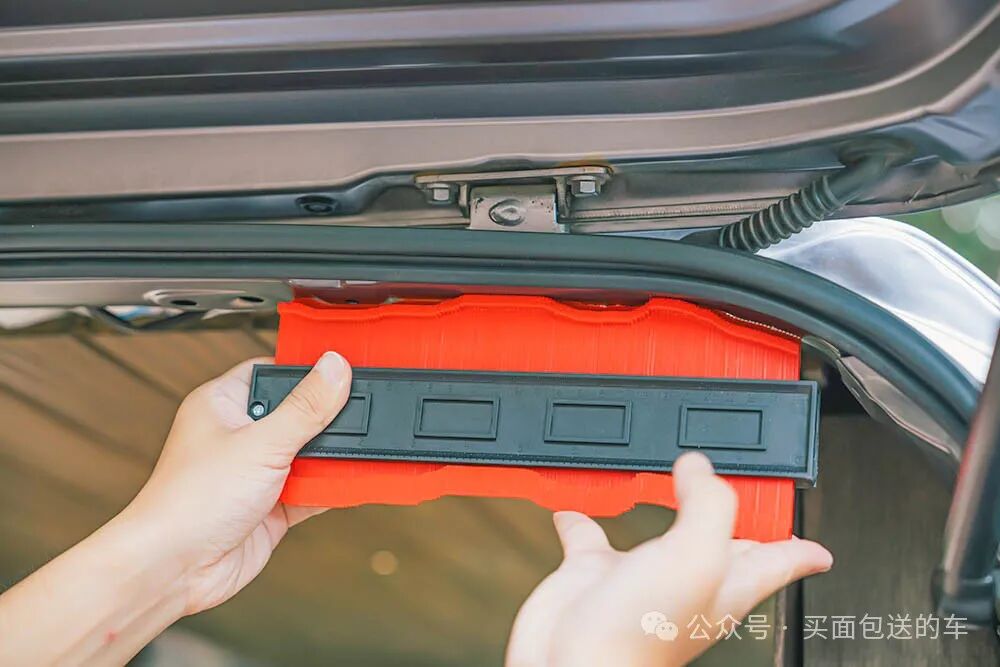 木条收边的技巧:通过仿形尺来测量木条末端的形状。以方便单独修正来匹配原车的钣金形状。