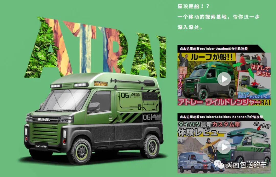 在大发官网上挂出的Atley Wild Ranger 概念车设计图,以及将车顶的平头船拆下的演示视频。