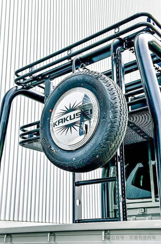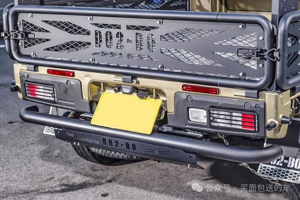 在车架上安装的护栏钢与集成了倒车雷达探头的车灯照是重要的添加细节。