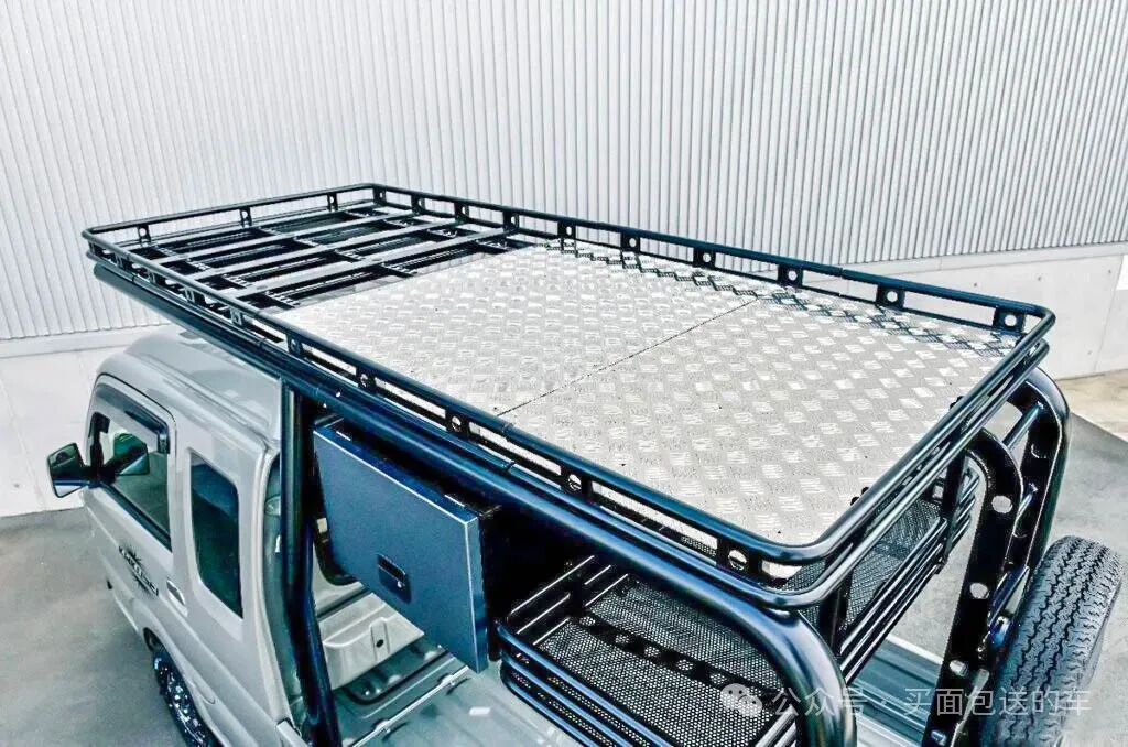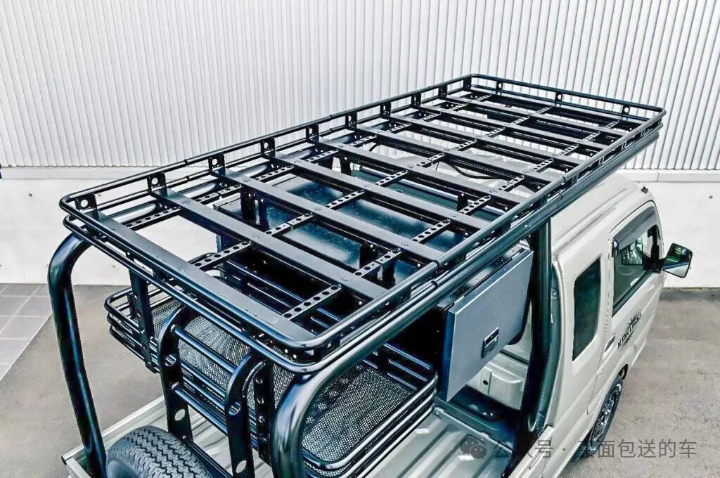 通过加粗的一体式管夹,车顶上改造为3.4M长直通平台,最大限度利用了轻自动车的尺寸限制政策,为户外露营和运输特种器材带来无限可能(完)。