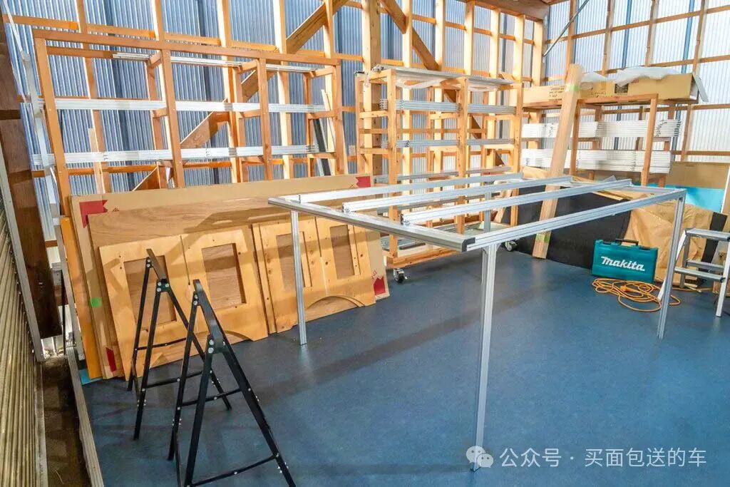 工业铝型材通过T型螺丝和通用连接件实现气压撑杆的固定,无需焊接,最近在国内小红书也作为车用家具和组合柜体的理想结构方案。