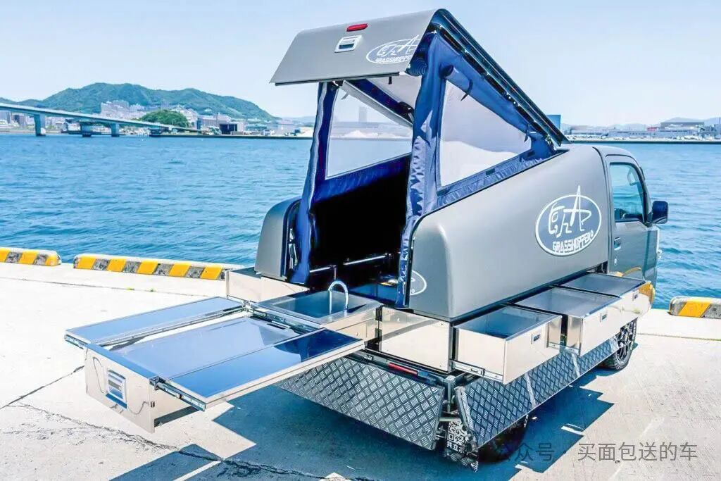 来自于卡车货箱改装厂的 克列茨工业(Kyoritsu Industry),擅长定制卡车和户外作业车辆,在大发HIJET轻卡的基础上推出了GRASSHOPPER露营车系列。