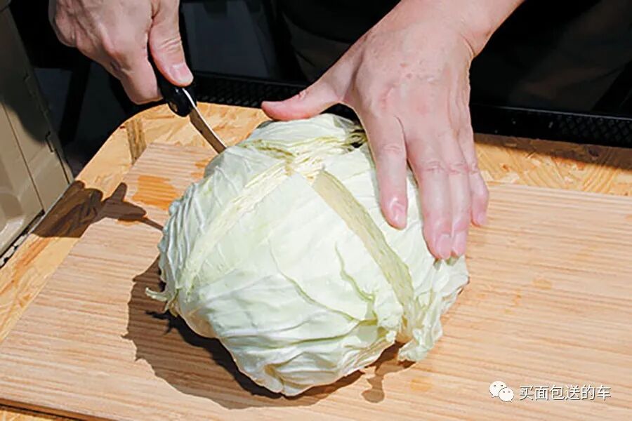 卷心菜按照十字结构切开后,把培根肉夹到十字开口中,加入1.5升水和其他配菜,放入浓汤宝和胡椒粉,加热煮开水后,小火慢炖30分钟。