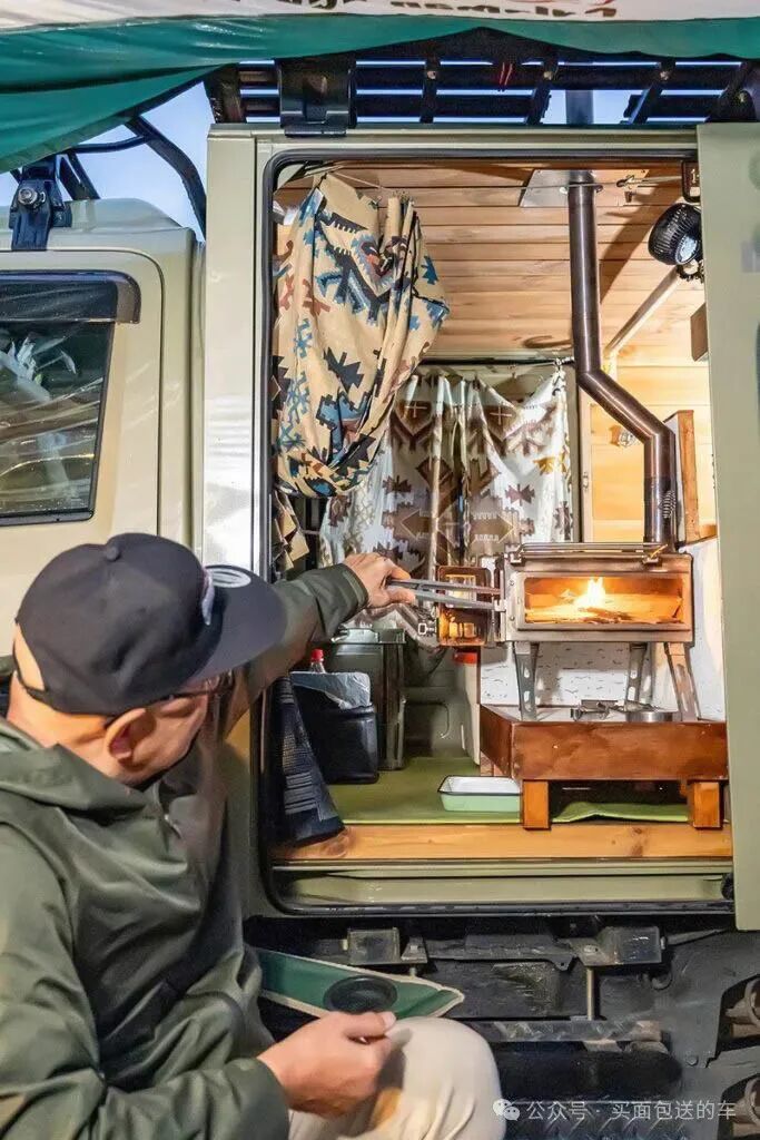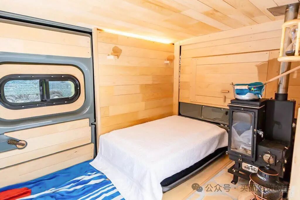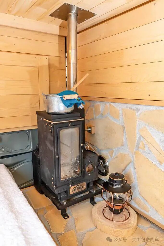 “你只需要充足的木材和燃料以及水,住在车内如同住在户外的小木屋一样方便!”