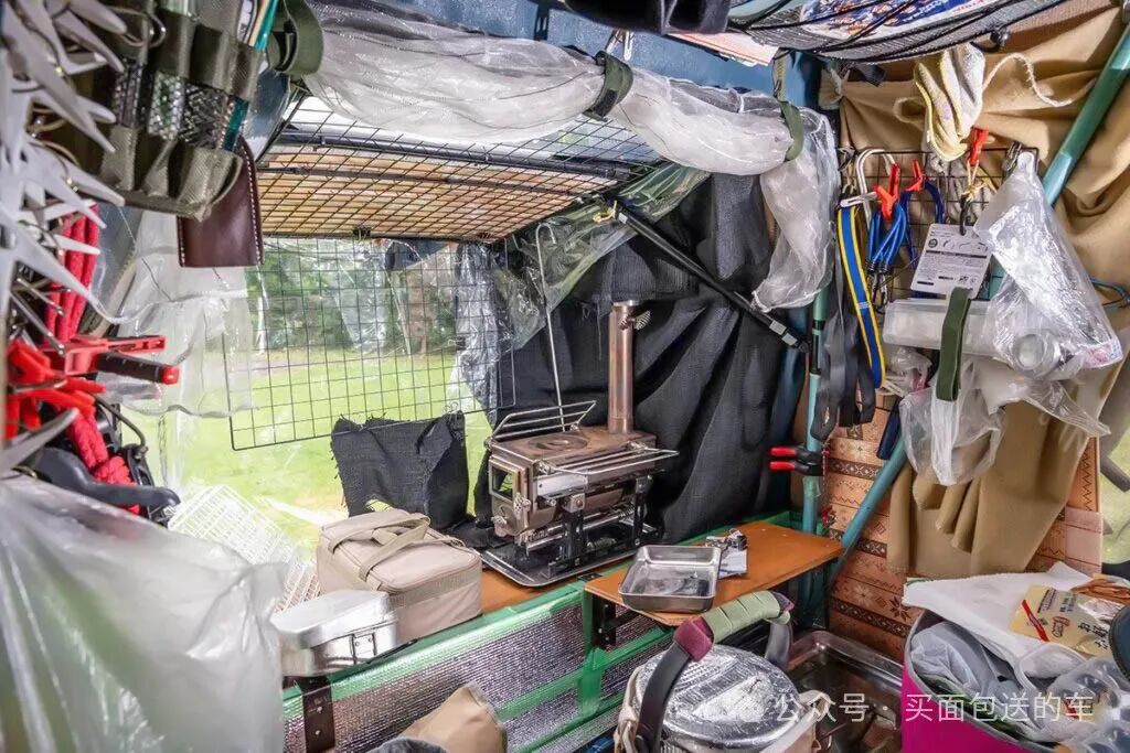 用五金工具简单构建的的车内空间,额外时间可以继续用轻卡作为运货的工具。