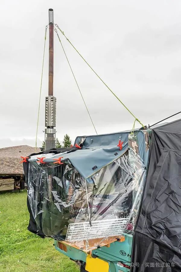 通过额外拓展的尾甲板为柴暖炉提供支撑,加上雨罩后看上去像宫崎骏动画中的移动房屋。