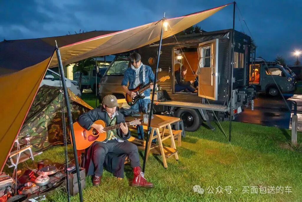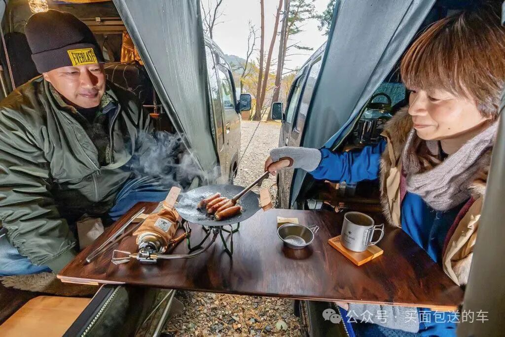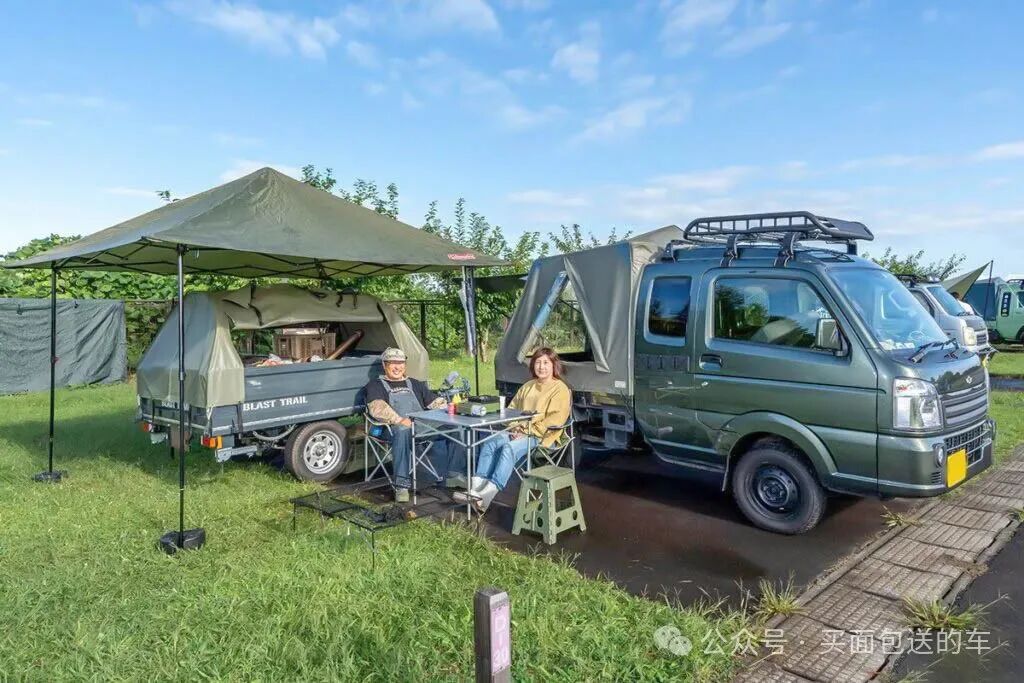 秀和夫妇对轻卡进行了大胆的改造,并增加了小拖车来构建营地。