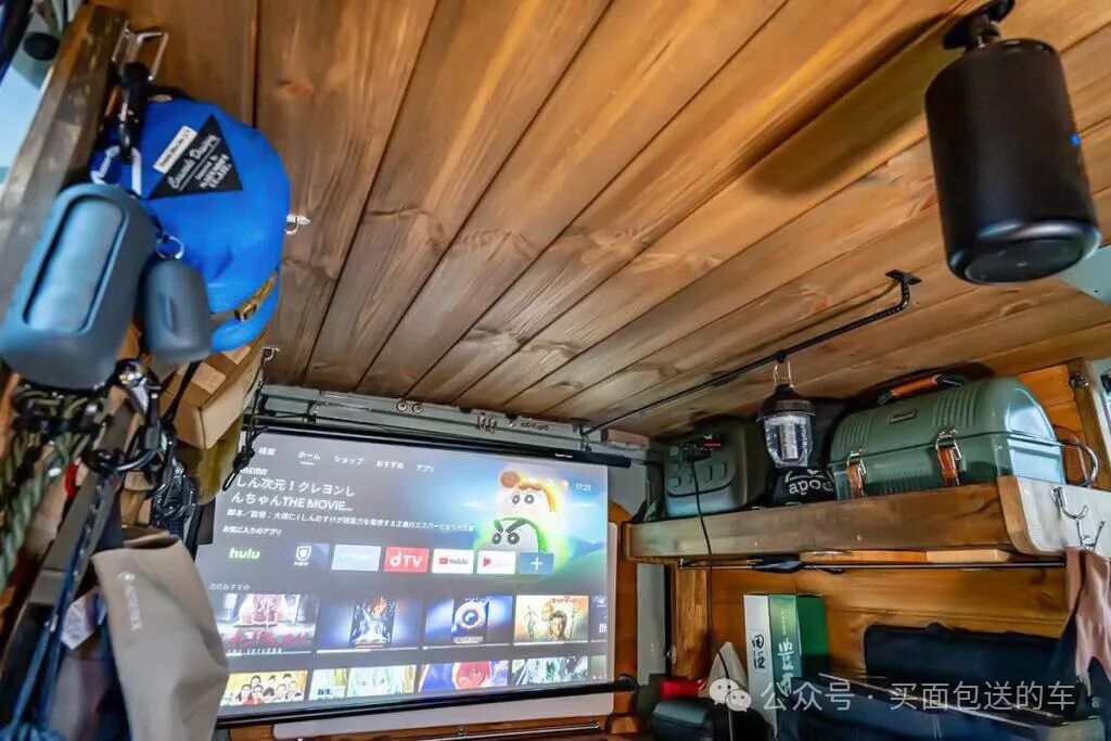 加装的投影仪可以为车内实现大屏幕的观影效果。