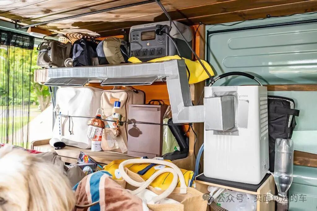 桥本夫妇用户外移动空调通过排气管实现了内外冷热空气的循环,这让车内的湿度控制在理想的范围。