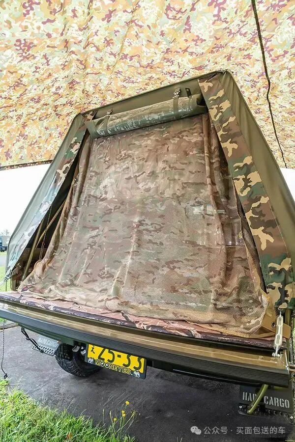 为帐篷单独添加的CP迷彩网也能有效隔绝户外蚊虫,外形粗犷而实用。