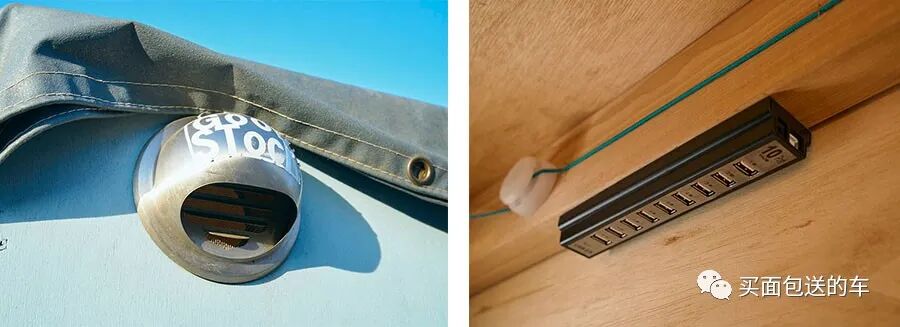箱体内外的不锈钢透气窗口和车内的USB供电插座