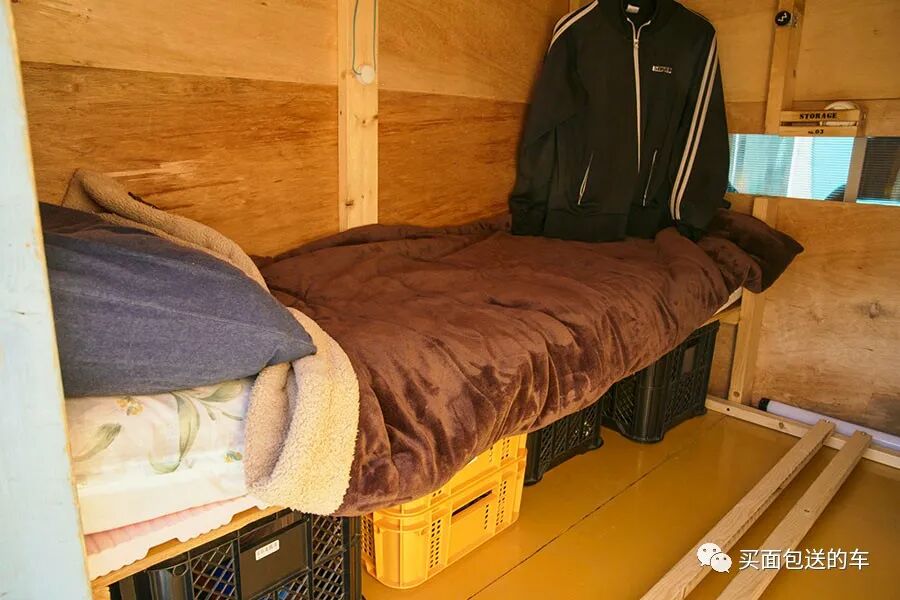一开始我从亲戚那里继承的本田Actitruck轻卡,手动4驱版本。在制作“盒子”之前,在尾箱里直接用睡袋睡过觉。接下来从一家家胶囊旅馆购买了一个床位单元并装在后面,最后我和父亲决定用木工板自己制作一个箱体并用货车防水布实现户外防水功能。