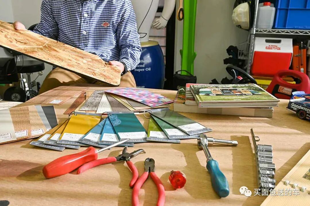 内饰的选色卡和材料样本都是改装露营车之前需要和客户充分沟通协定的。